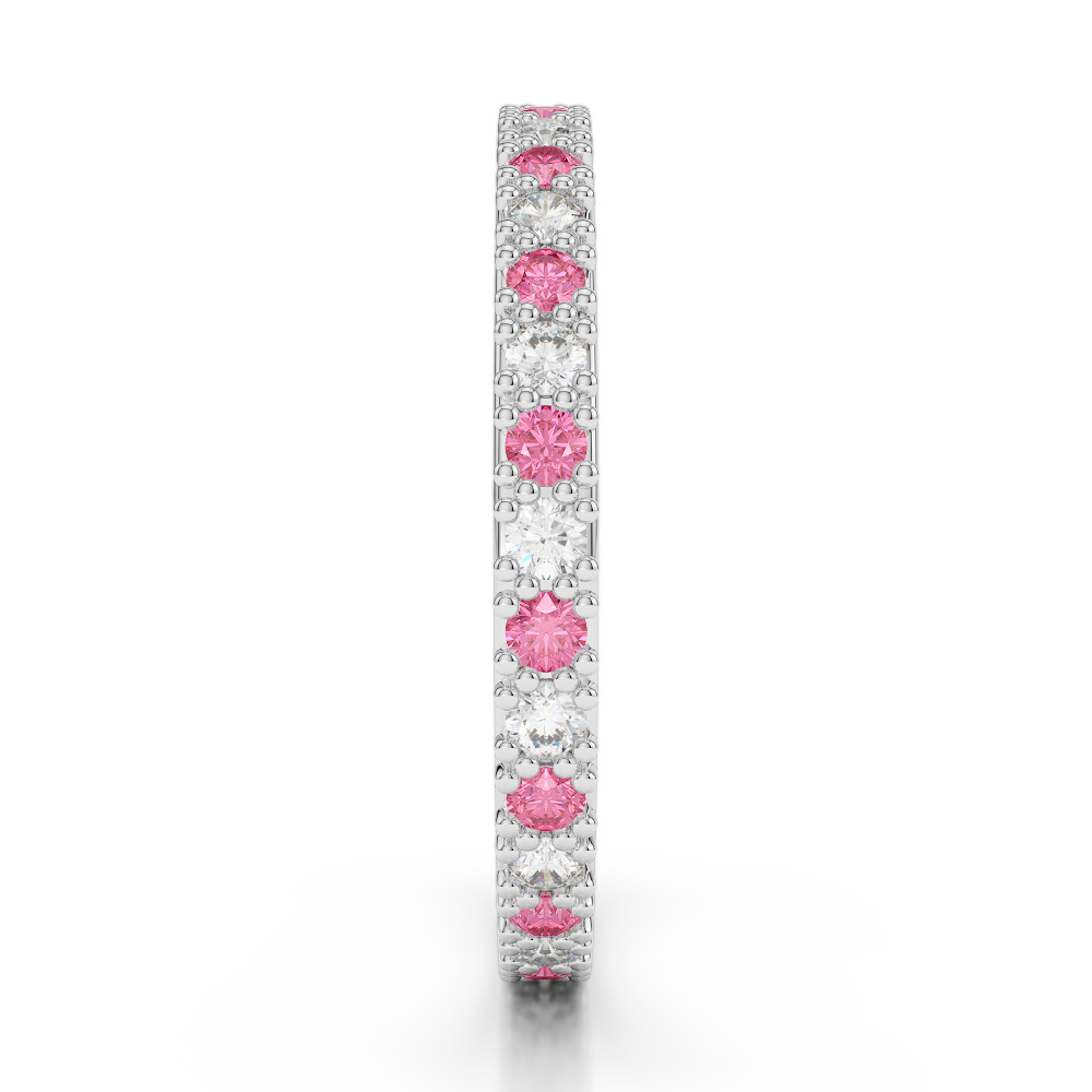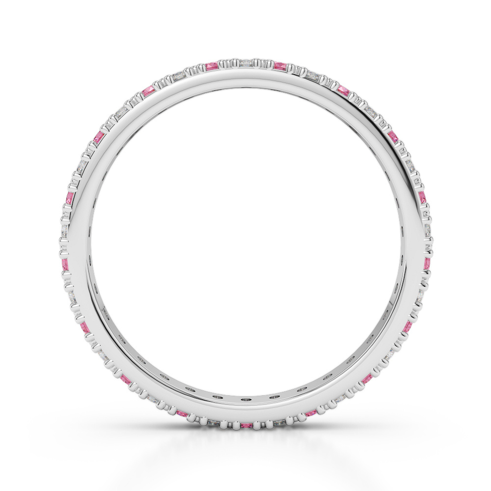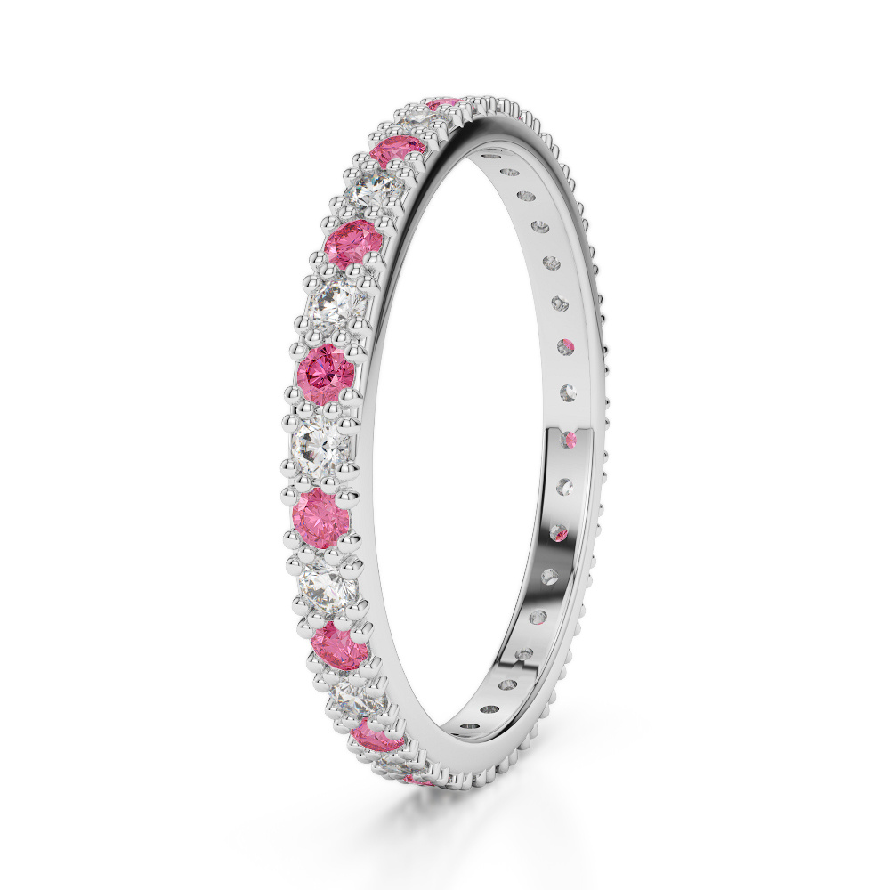 2 MM Prong Set Diamond Full Eternity Ring With Pink Tourmaline 0404