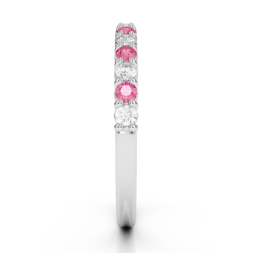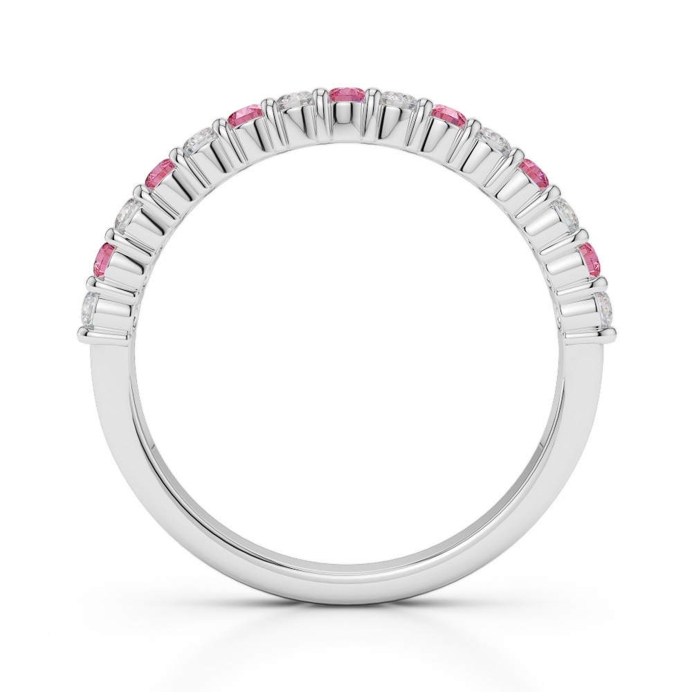 2 MM Prong Set Pink Tourmaline & Diamond Half Eternity Ring 0391