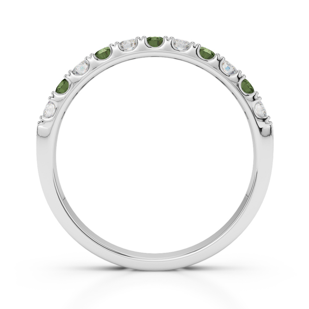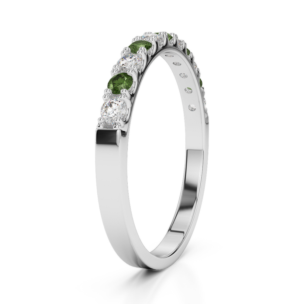 2 MM Round Cut Green Tourmaline Half Eternity Ring With Diamond 0401