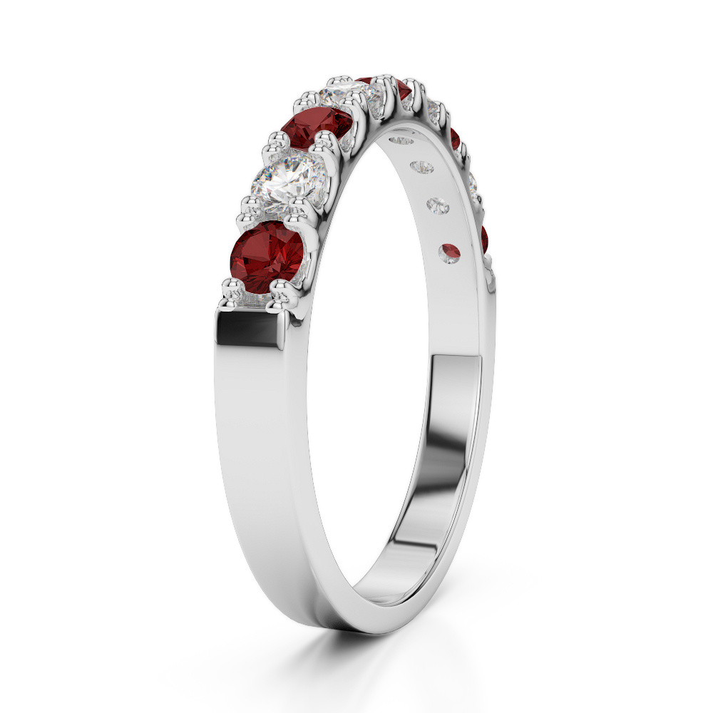 2.5 MM Claw Set Diamond & Garnet Half Eternity Ring 0402