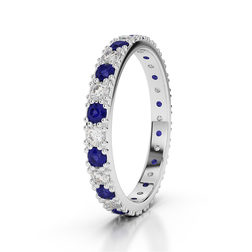 2.5 MM Prong Set Blue Sapphire Full Eternity Ring With Diamond 0405