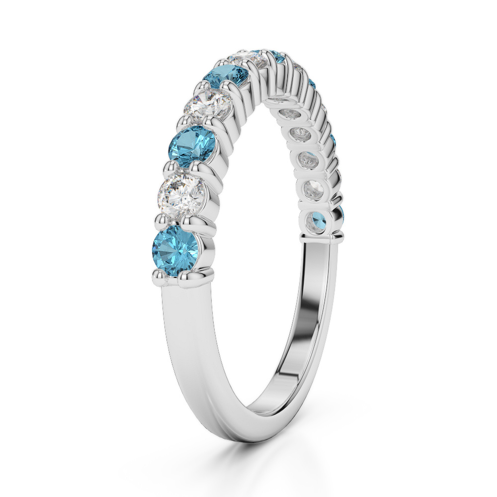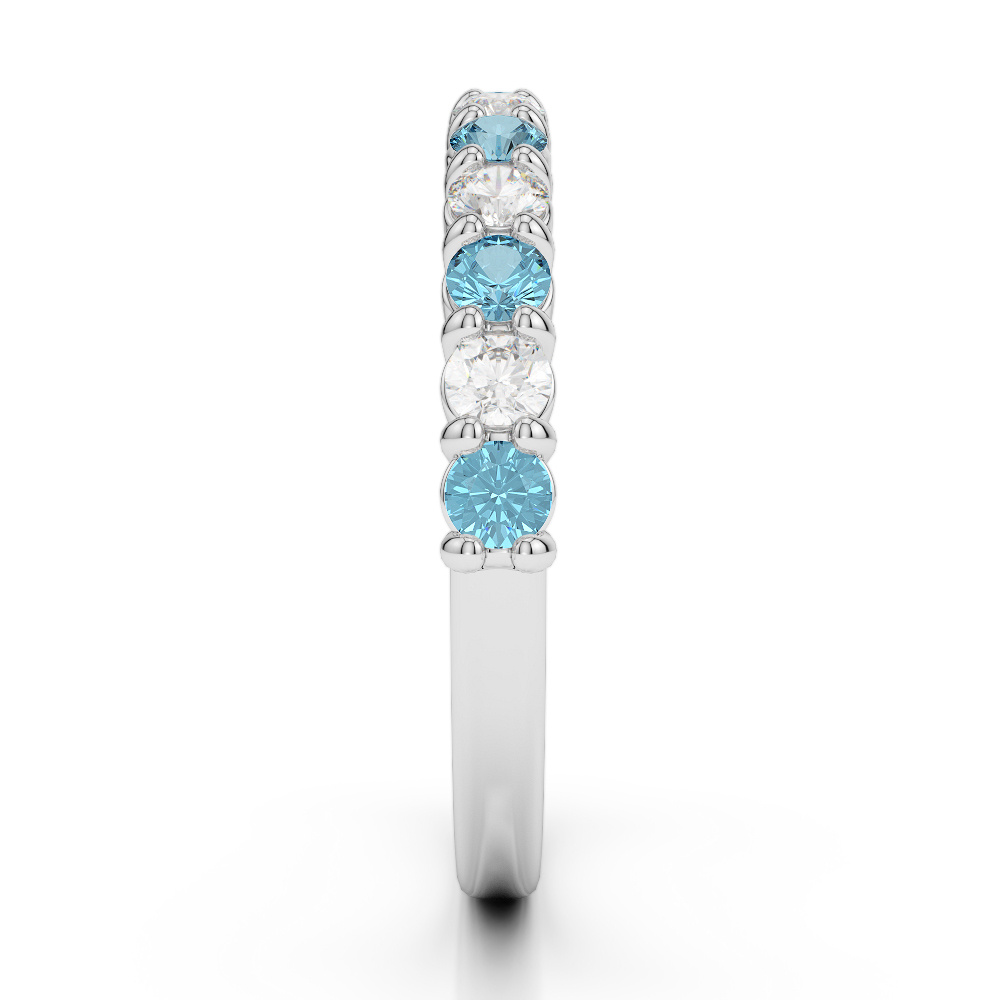 2.5 MM Prong Set Diamond Half Eternity Ring With Aquamarine 0392