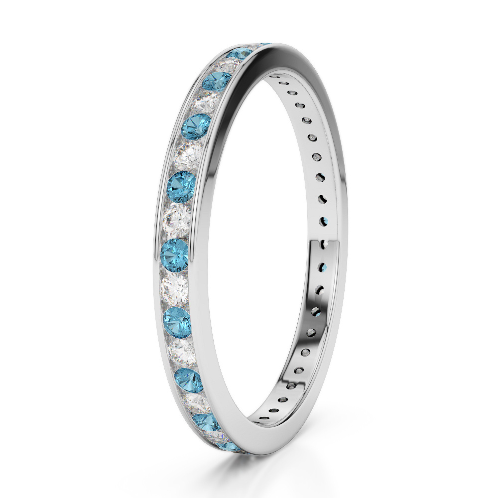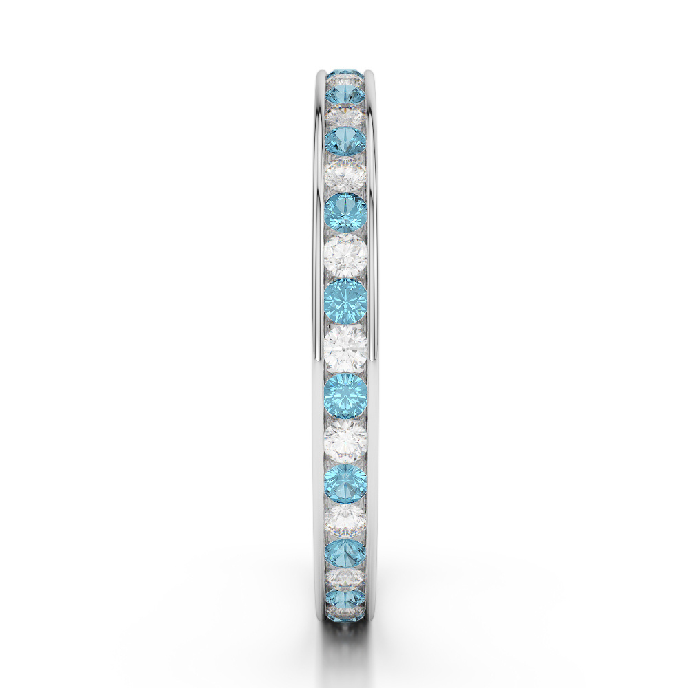 2.5MM Channel Set Aquamarine and Diamond Full Eternity Ring 0364