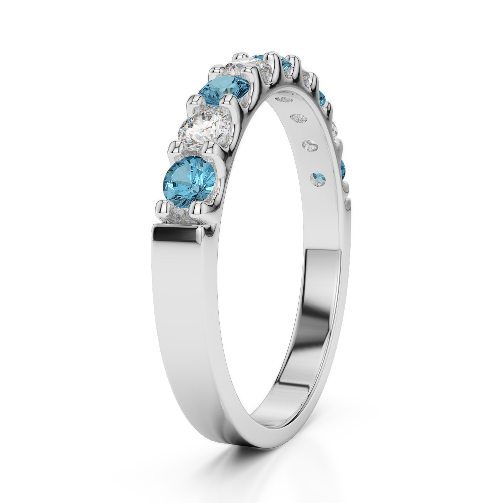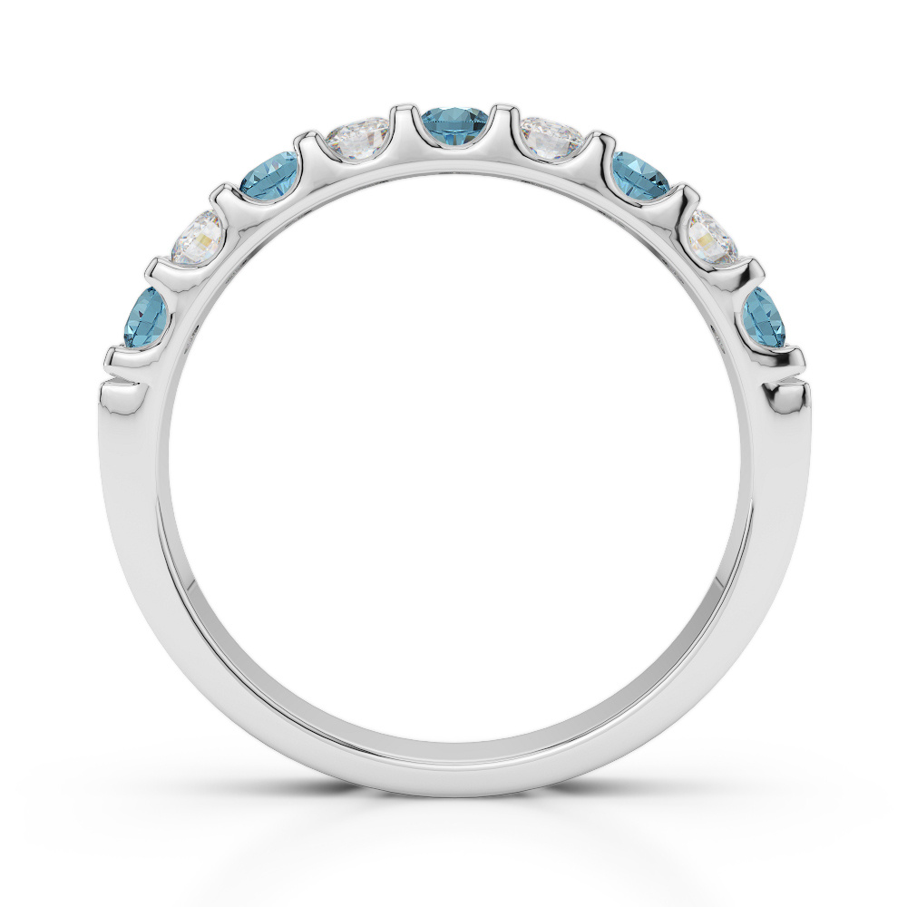 2.5MM Claw Set Diamond & Aquamarine Half Eternity Ring 0386