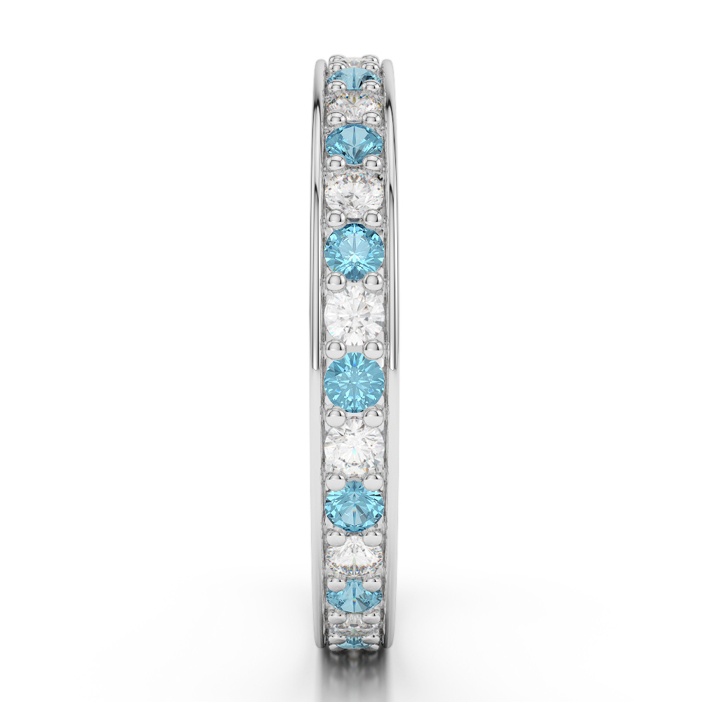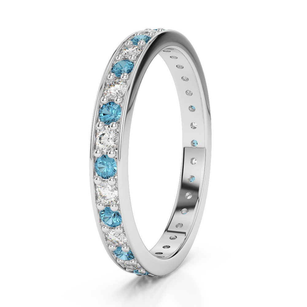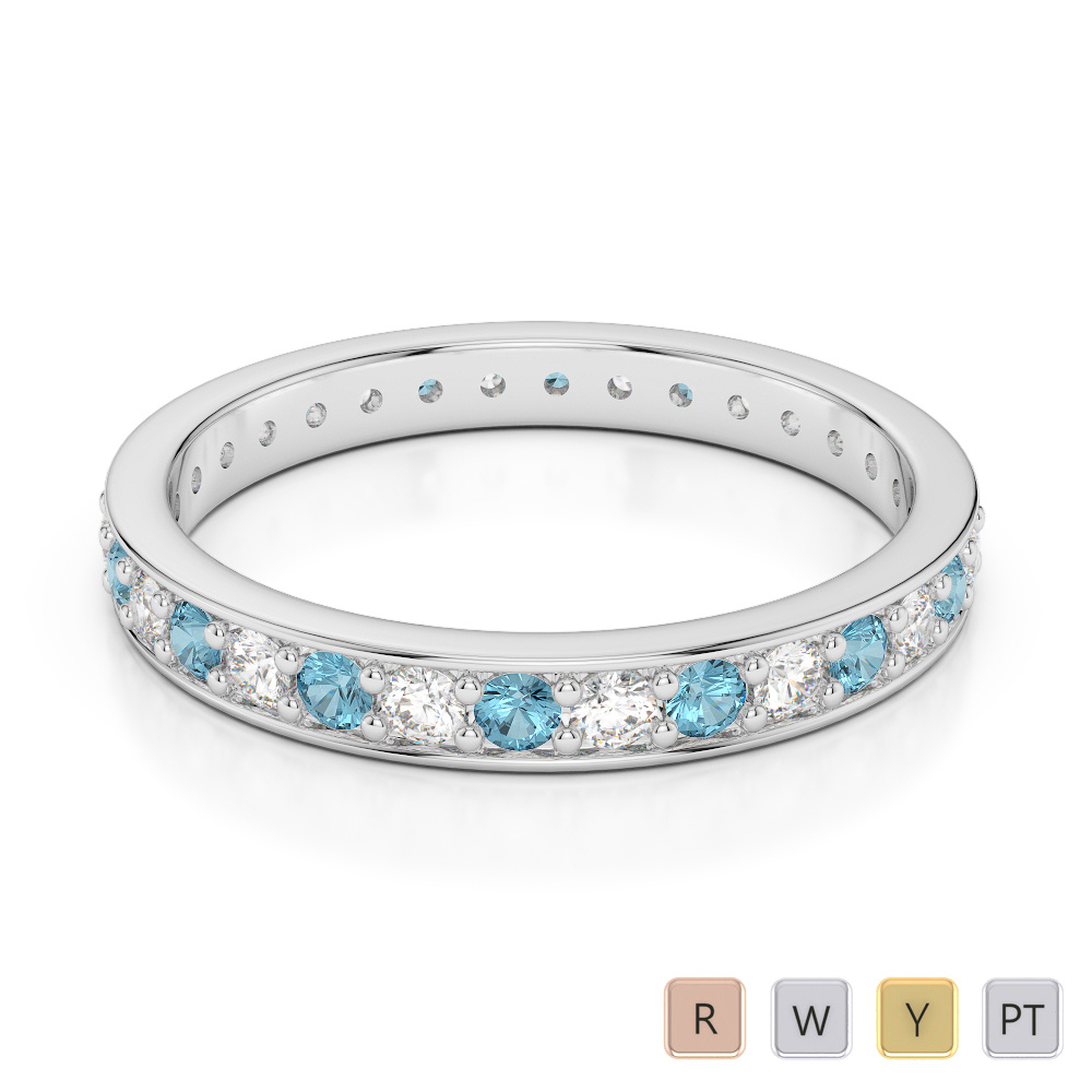 2.5MM Prong Set Diamond and Aquamarine Full Eternity Ring 0357