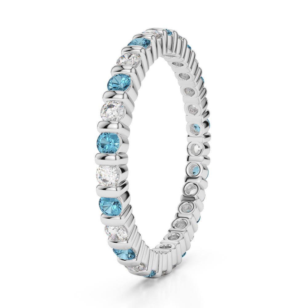 2MM Bar Set Aquamarine Full Eternity Ring With Diamond 0370