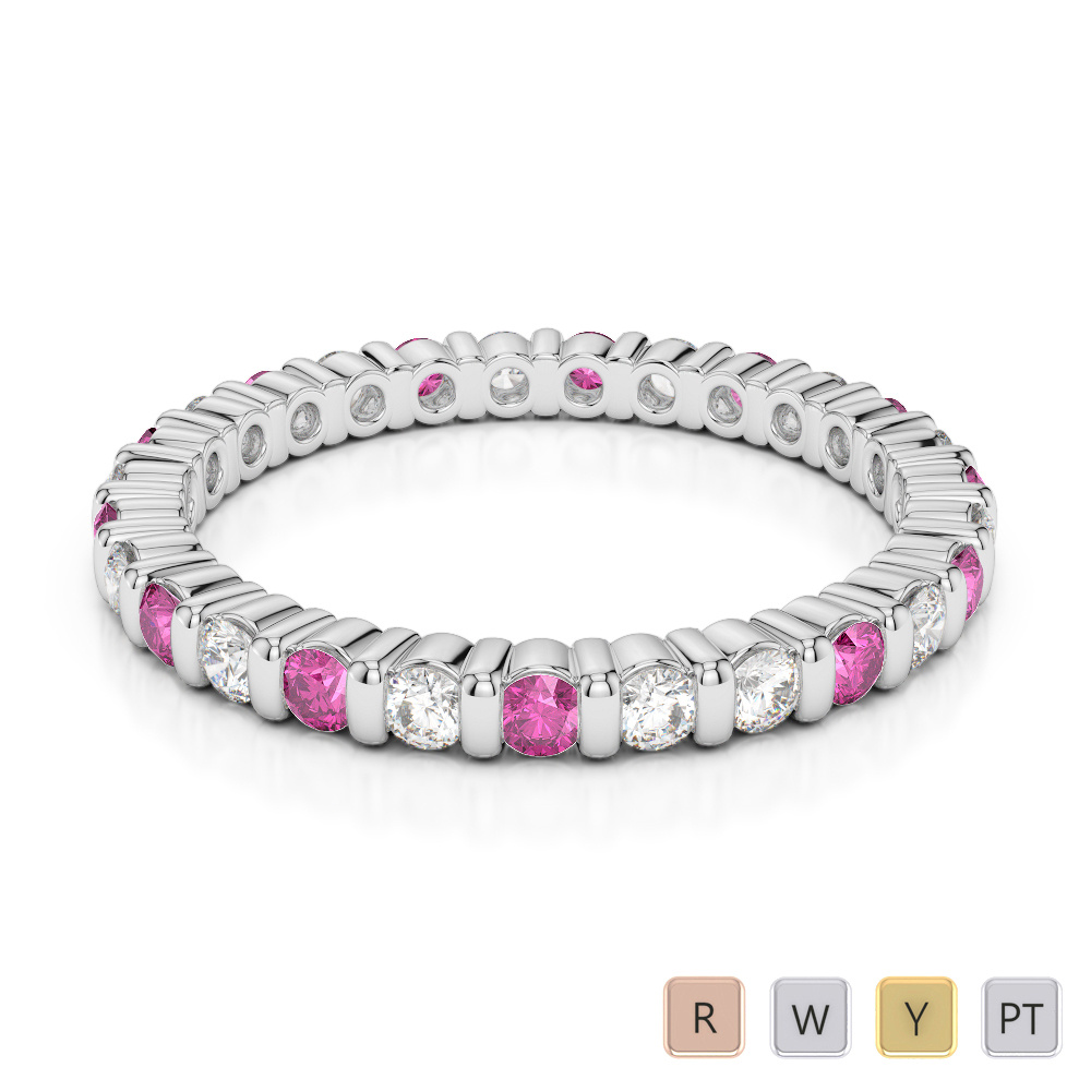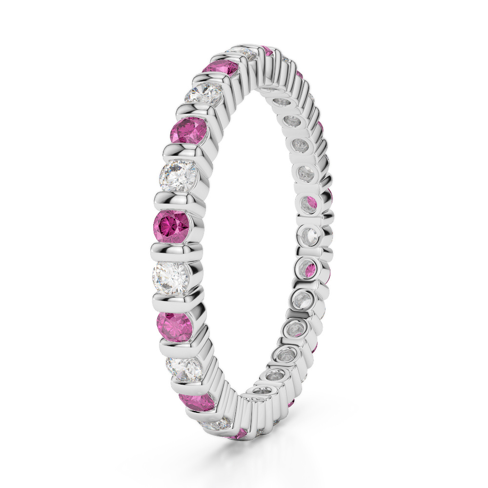 2MM Bar Set Pink Sapphire Full Eternity Ring With Diamond 0370