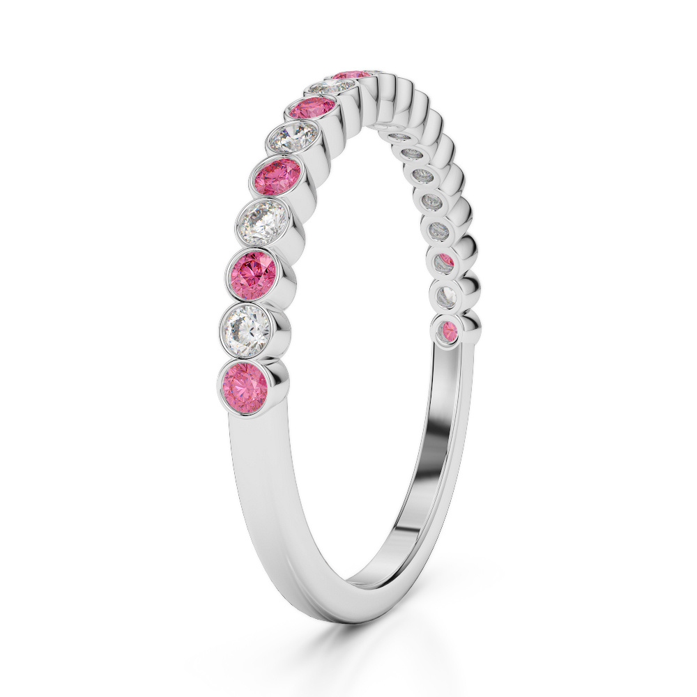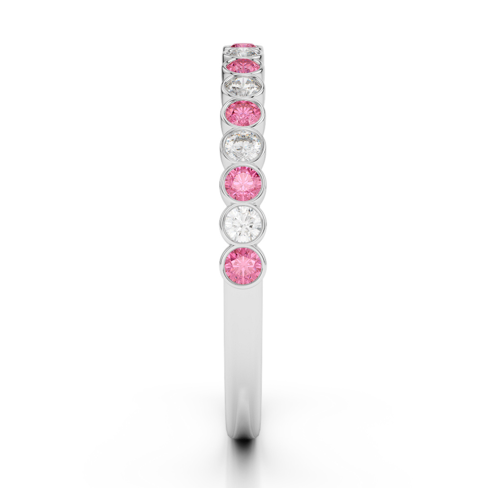 2MM Bezel Diamond Half Eternity Ring With Pink Tourmaline 0379