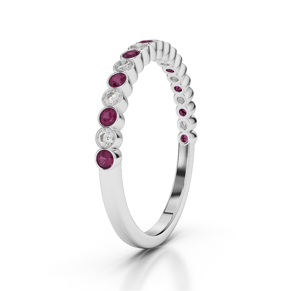 2MM Bezel Diamond Half Eternity Ring With Ruby 0379