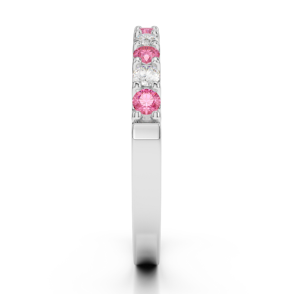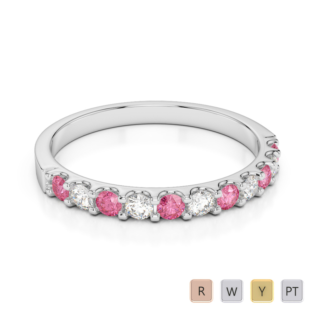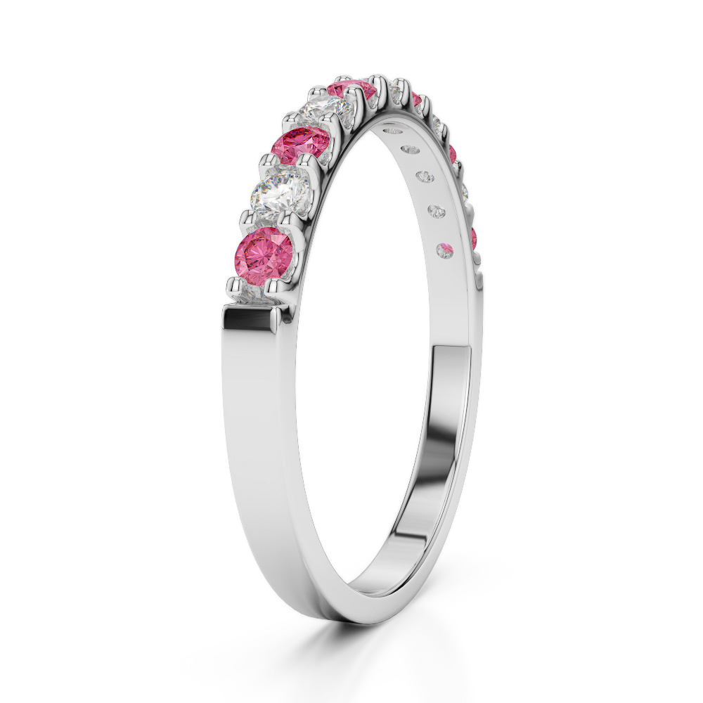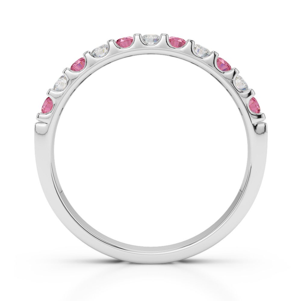 2MM Claw Set Diamond Half Eternity Ring With Pink Tourmaline 0385