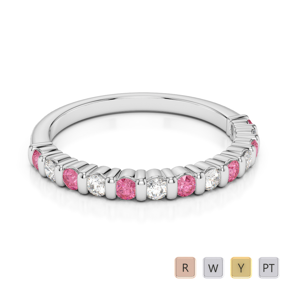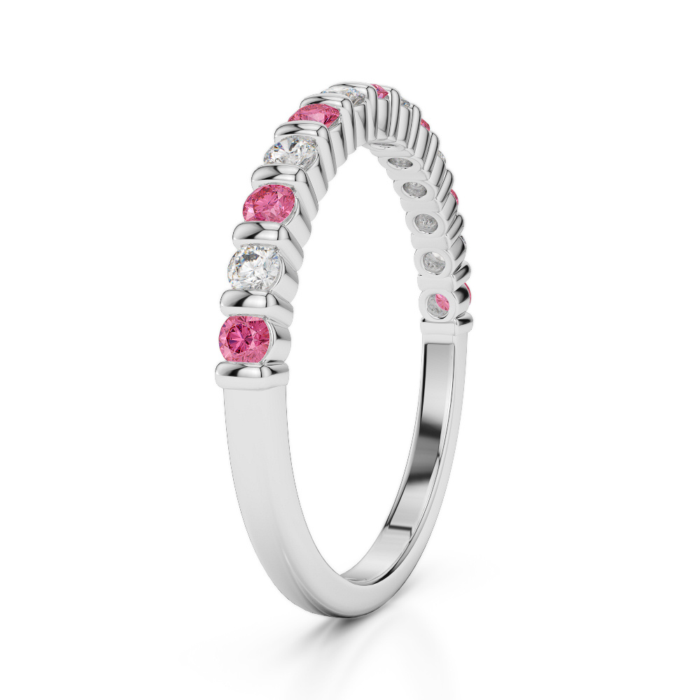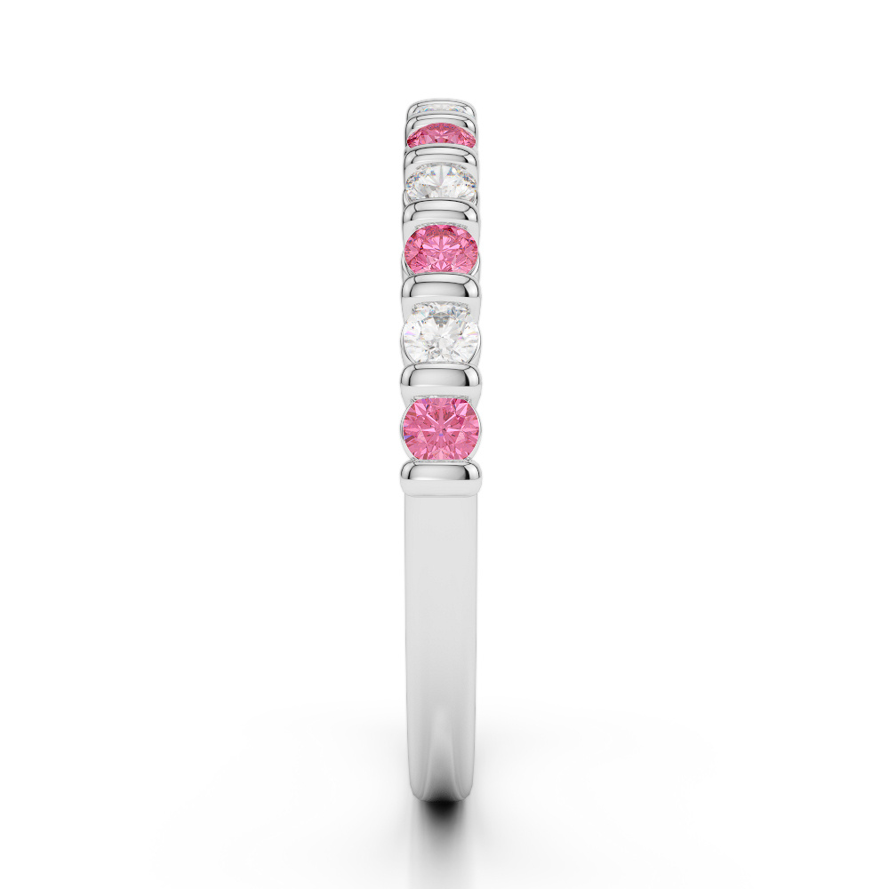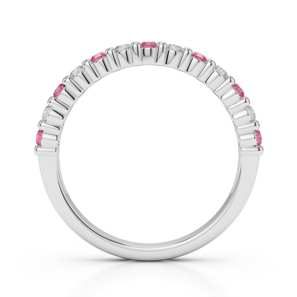 2MM Round Cut Pink Tourmaline and Diamond Half Eternity Ring 0373