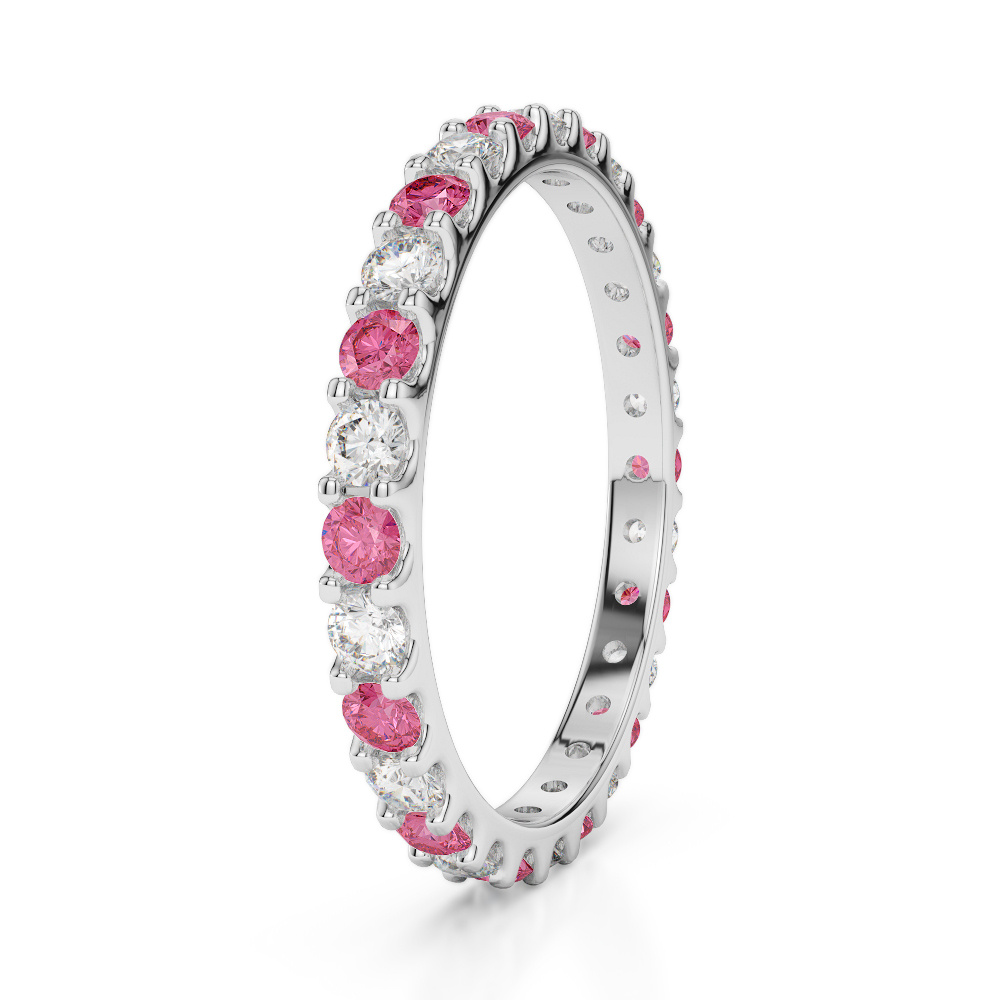 2MM Round Cut Pink Tourmaline Full Eternity Ring With Diamond 0382