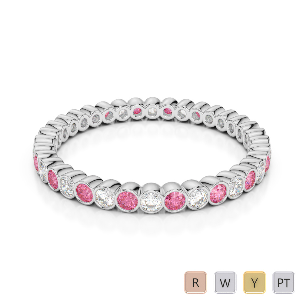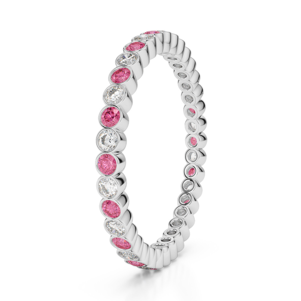 2MM Rubover Diamond Full Eternity Ring With Pink Tourmaline 0376