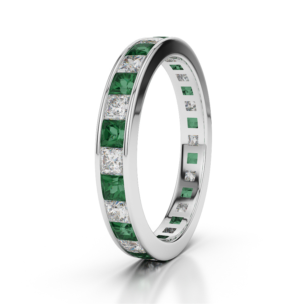 3 MM Princess Cut Emerald Full Eternity Ring With Diamond 0411