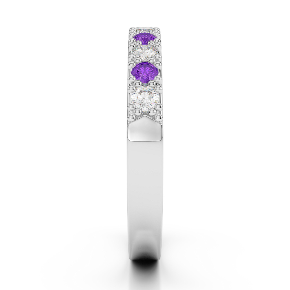 3 MM Round Cut Diamond & Amethyst Half Eternity Ring 0408