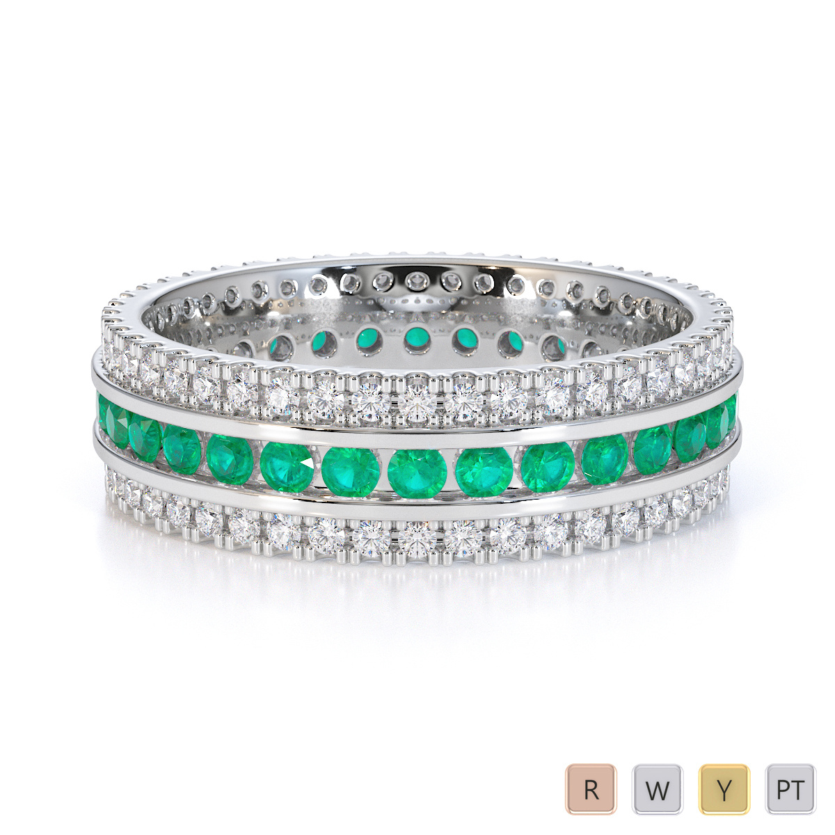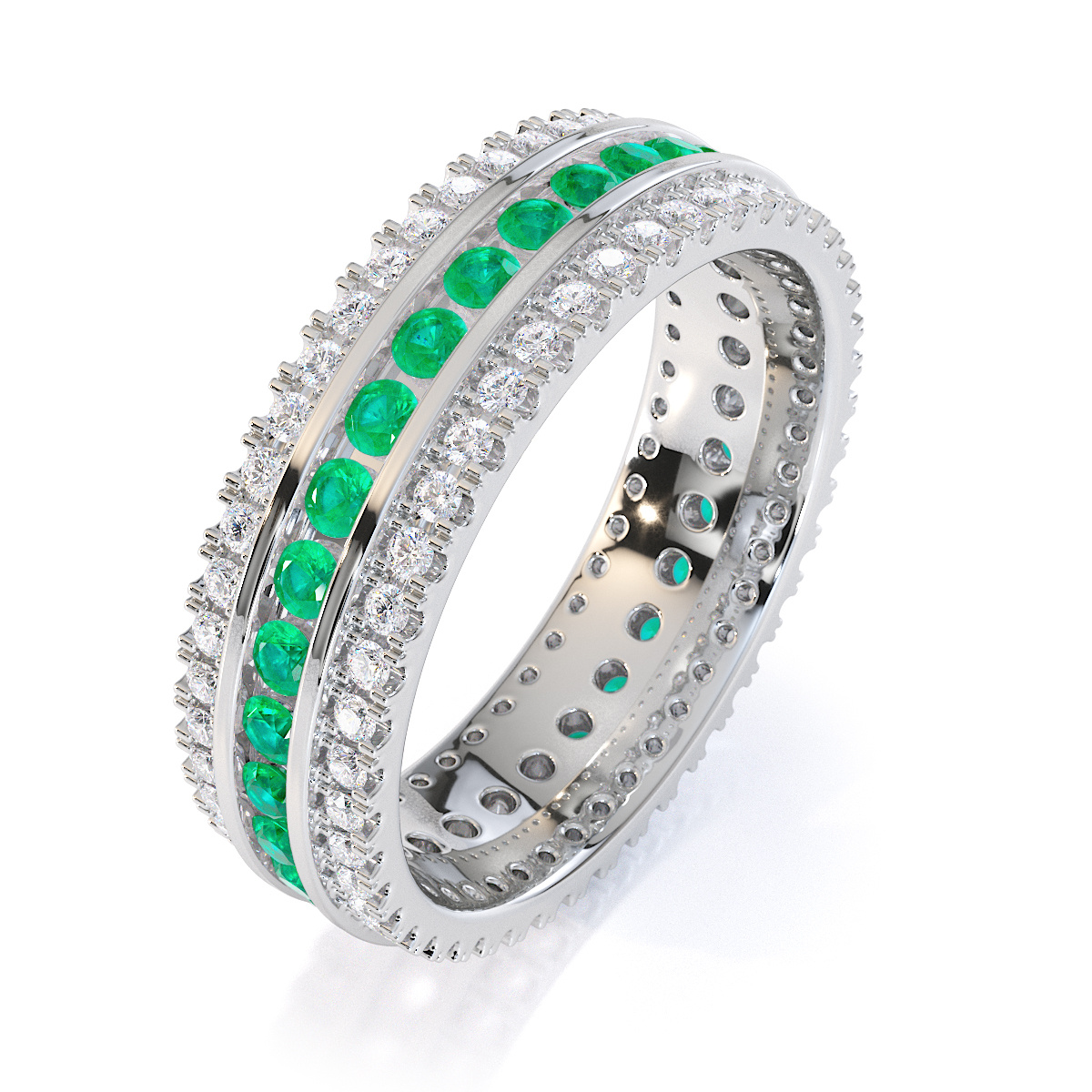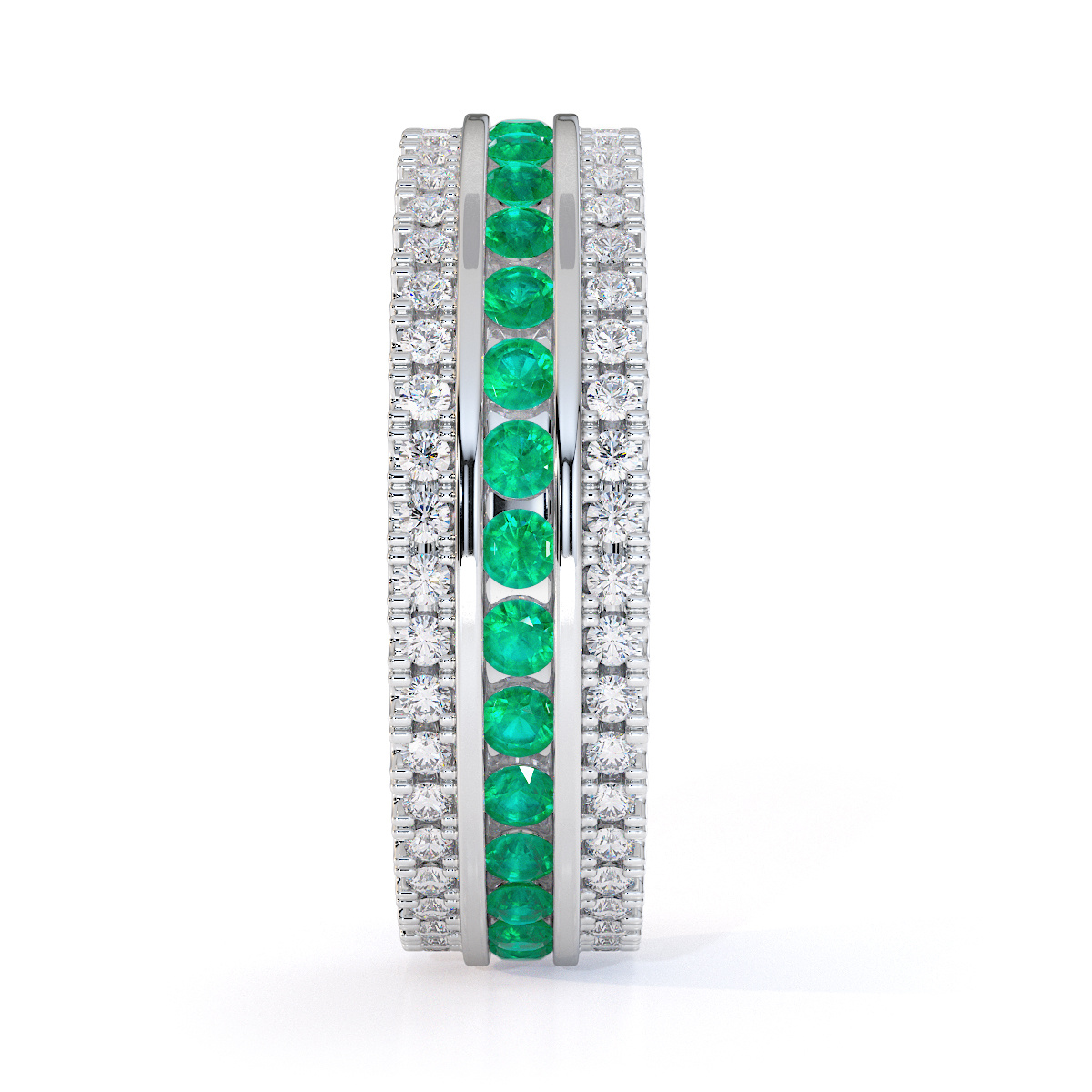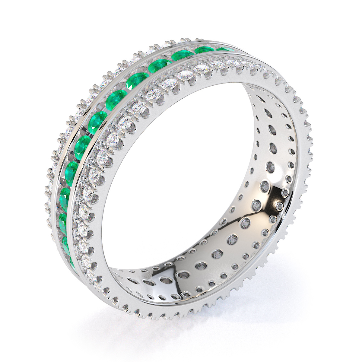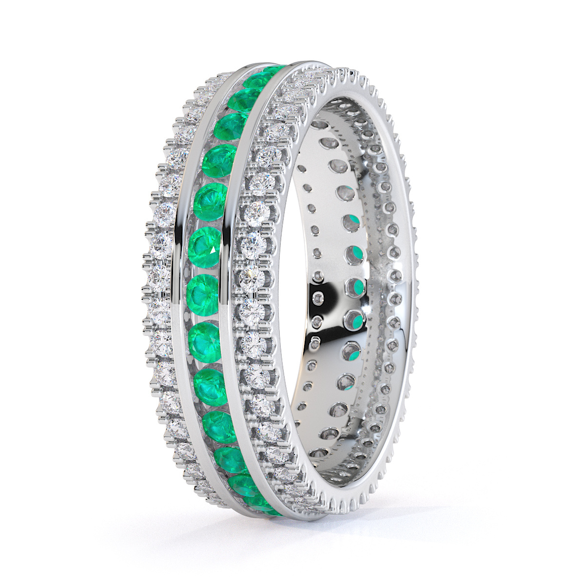 3 Row Channel Set Emerald and Prong Set Diamond Full Eternity Ring 0450