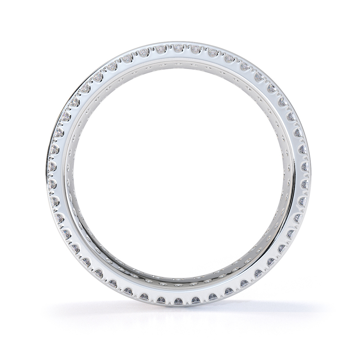 This eternity ring features emeralds and diamonds, showcasing elegance and sophistication. It is a full-eternity ring with both split prong and channel settings, ensuring maximum security. The regal charm of the emeralds and the radiant sparkle of the diamonds make it a true symbol of commitment and style.