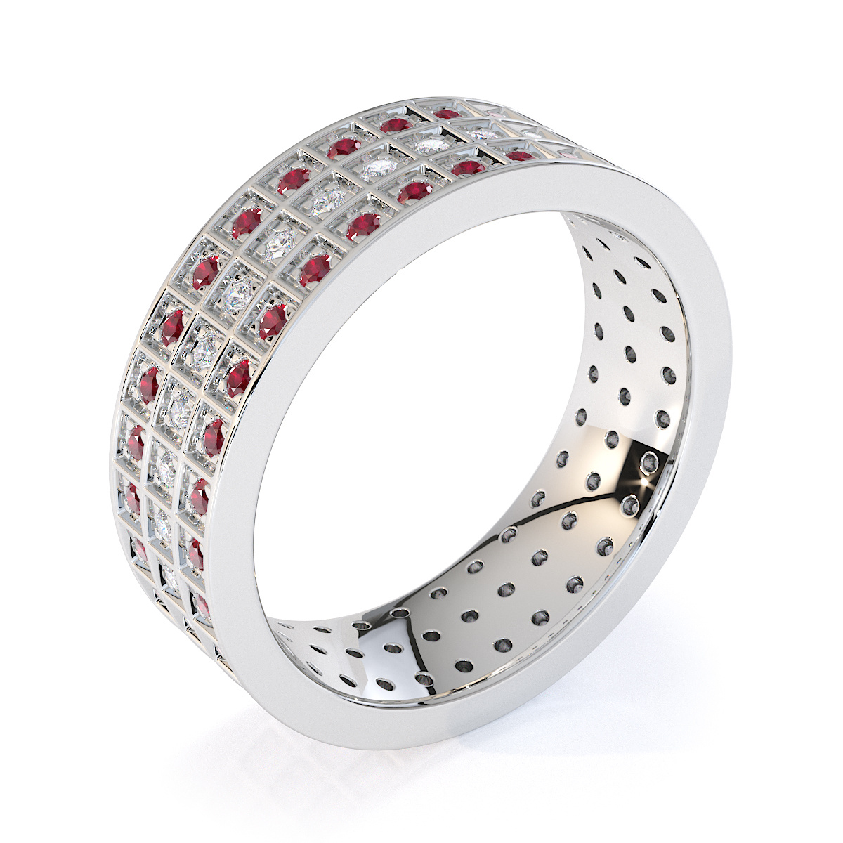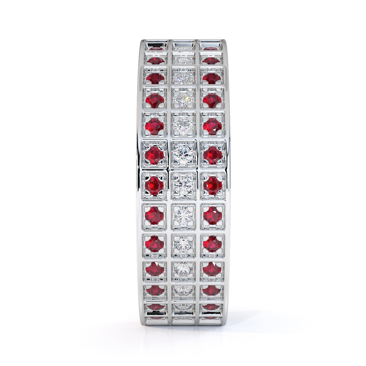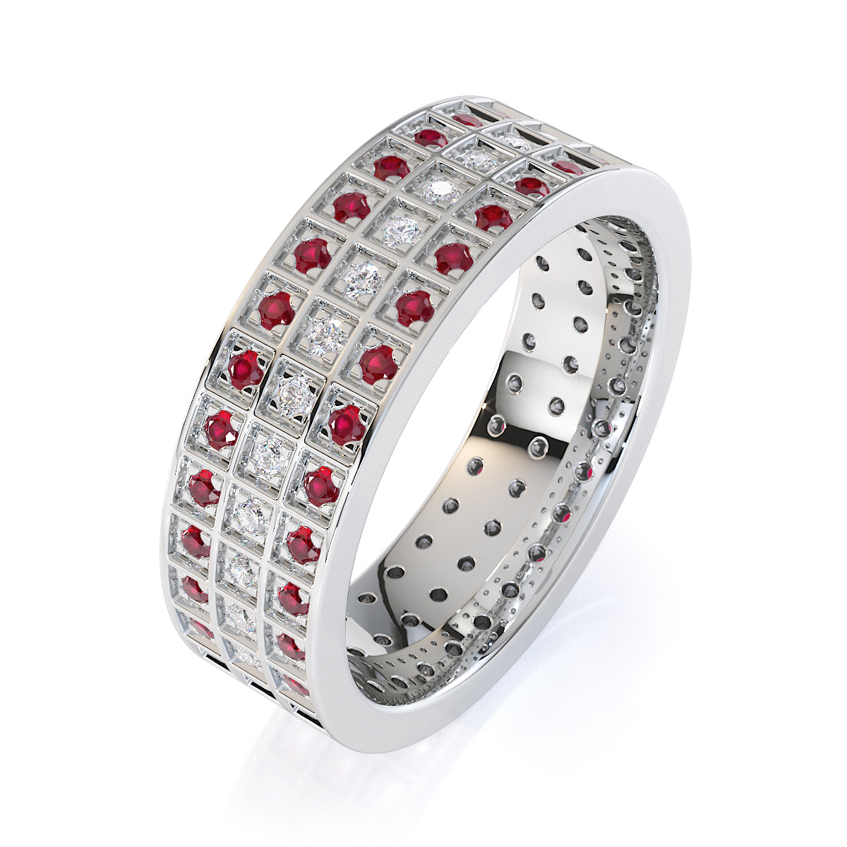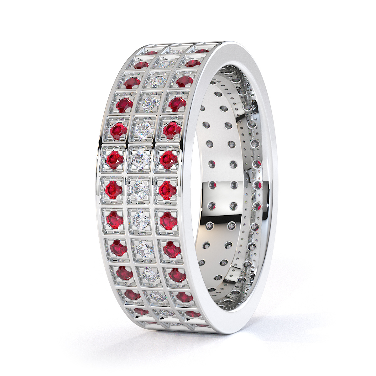 3 Row Claw Set Diamond and Ruby Full Eternity Ring 0436