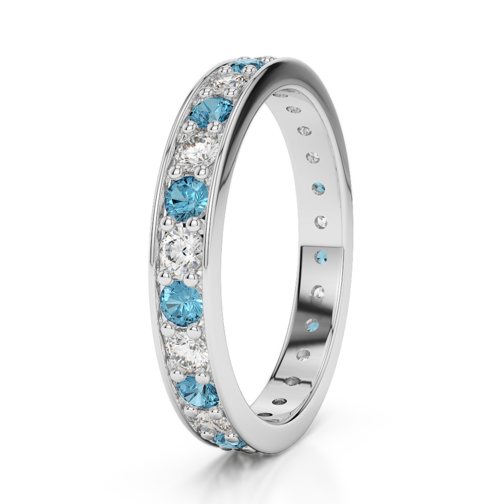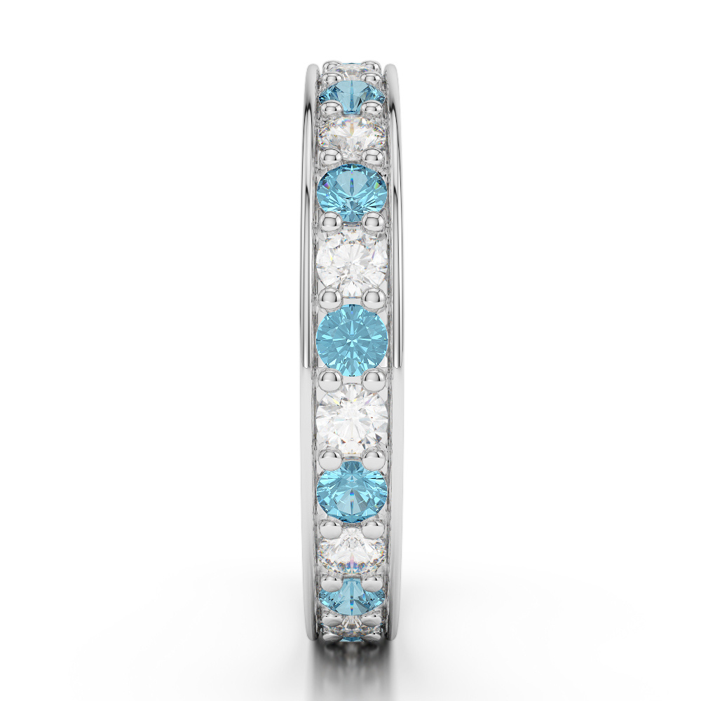 3MM Prong Set Aquamarine and Diamond Full Eternity Ring 0358
