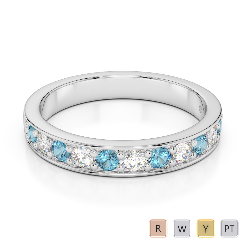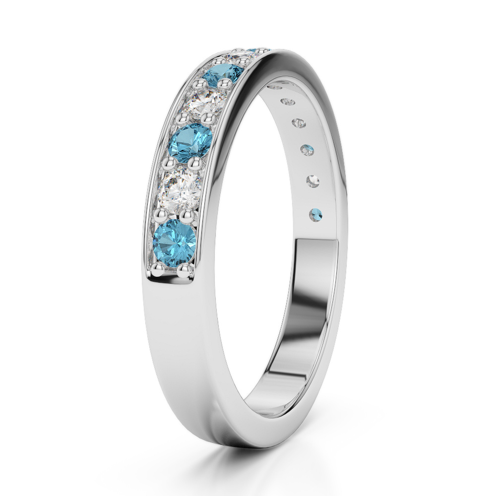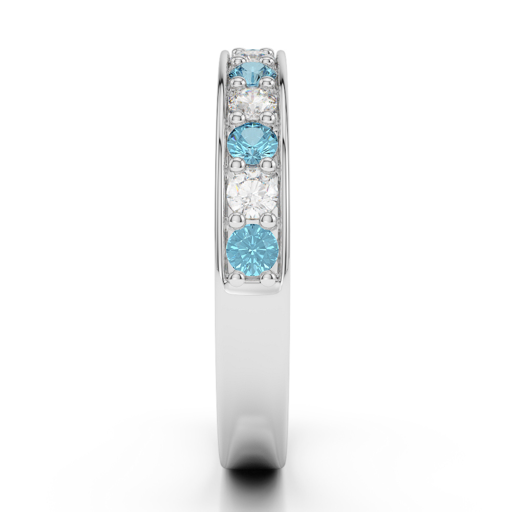 3MM Round Cut Diamond and Aquamarine Half Eternity Ring 0362