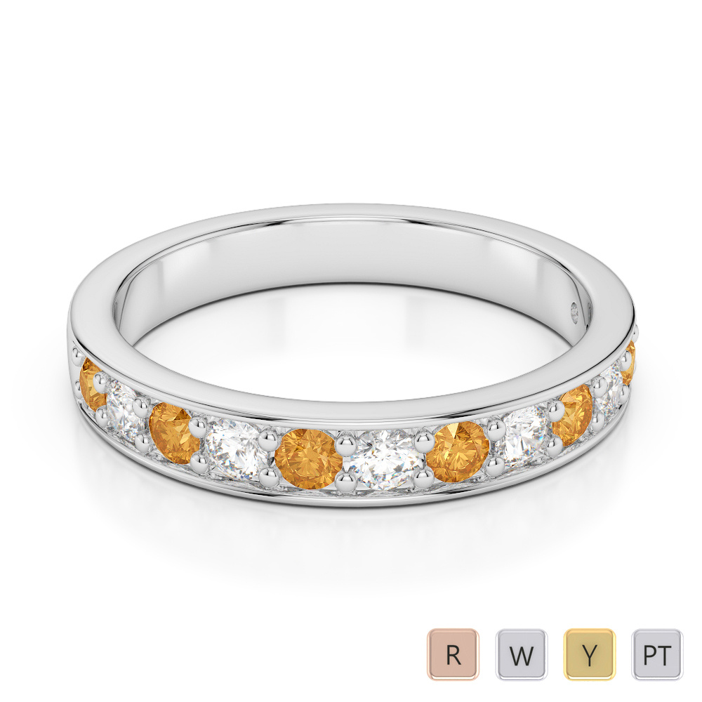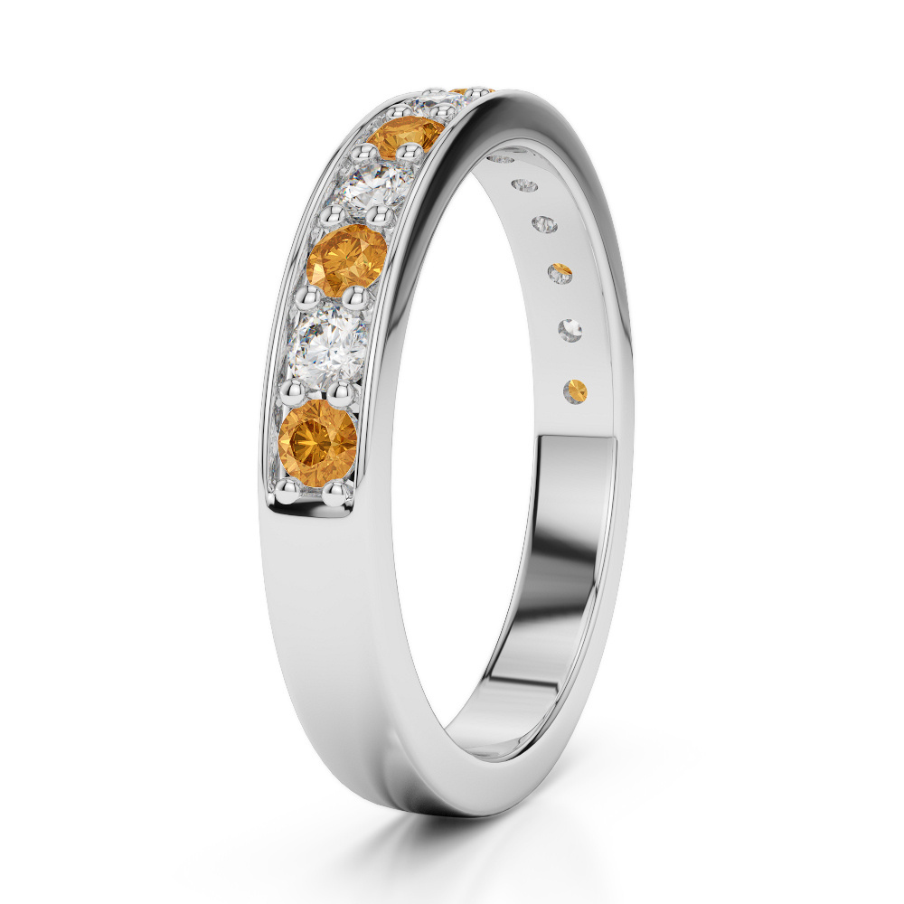 3MM Round Cut Diamond and Citrine Half Eternity Ring 0362