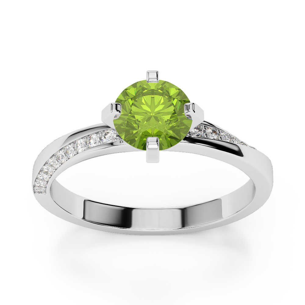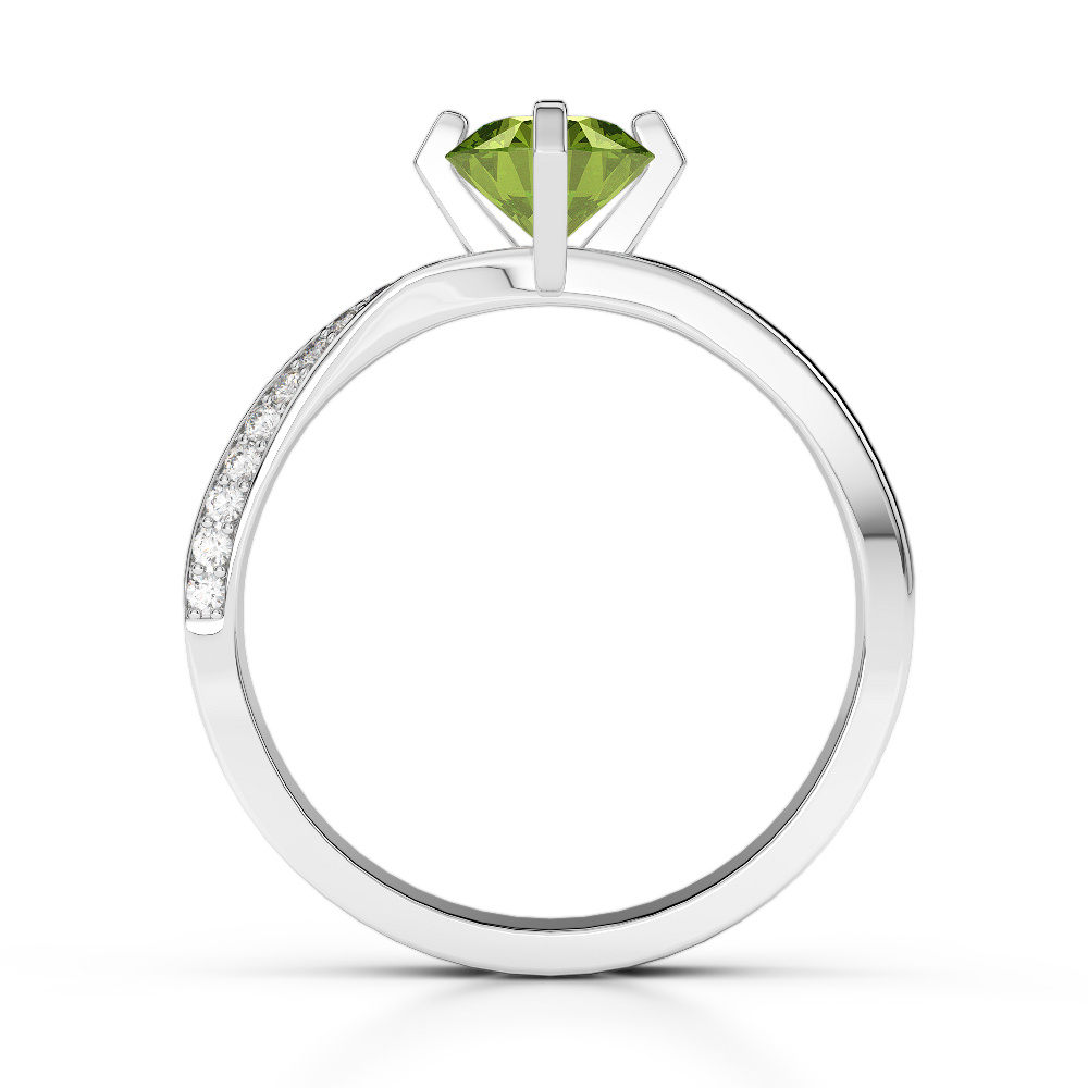 This stunning Peridot And Diamond Engagement Ring features a brilliant diamond in a classic prong setting, capturing light beautifully as a symbol of lasting love. The sleek band enhances its sparkle, while the secure setting ensures the diamond remains the radiant focal point of your forever promise.