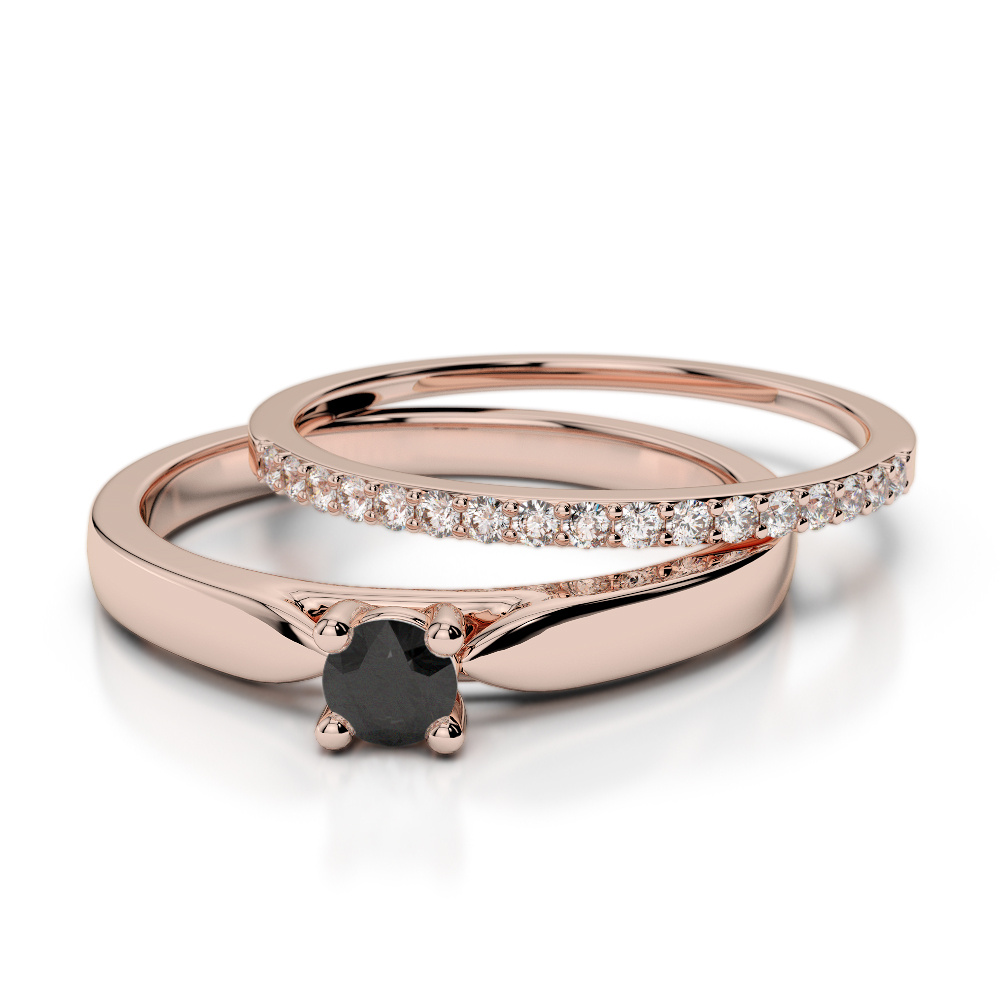 This exquisite bridal set ring features beautiful elegant wedding rings with dazzling black diamond set in a prong setting, creating a timeless and sophisticated look. The rings are beautifully crafted and designed to symbolize everlasting love and commitment, making them the perfect choice for couples looking to celebrate their special bond on their wedding day.