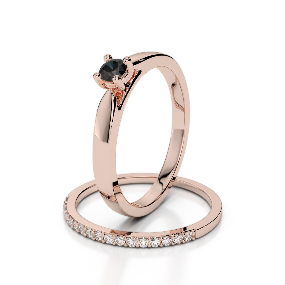 4 Claw Set Solitaire Black Diamond Bridal Set Ring 0294