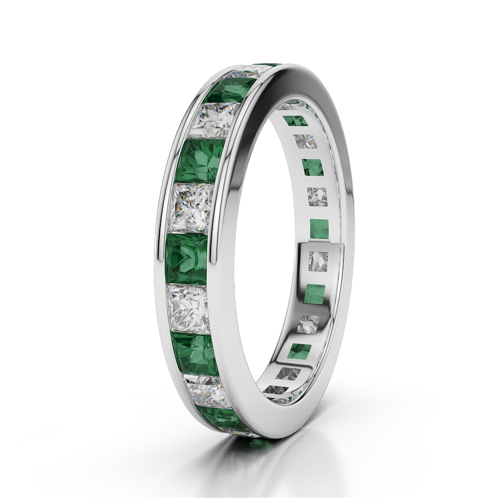 4 MM Channel Set Emerald Full Eternity Ring With Diamond 0412