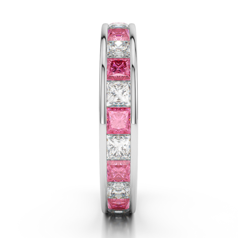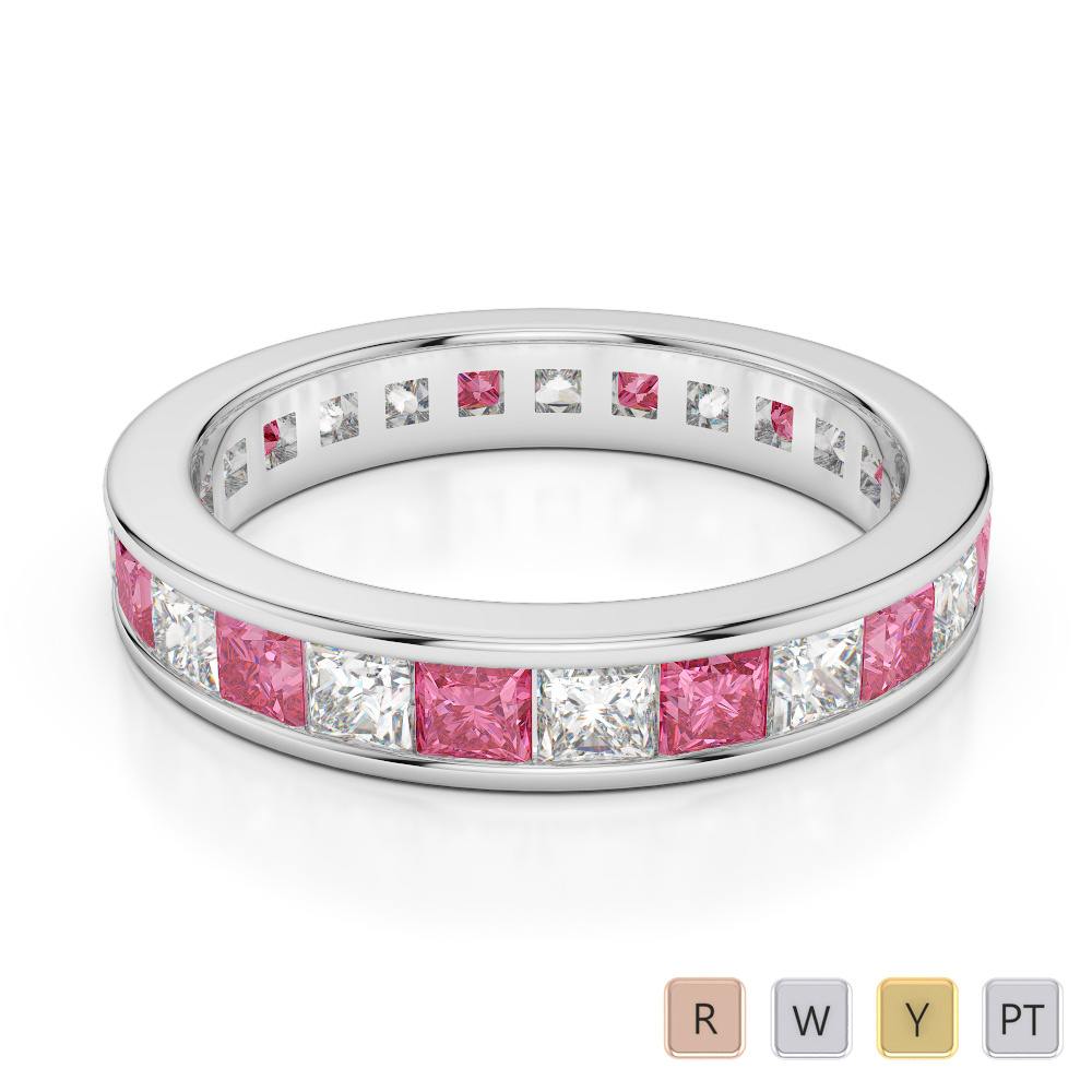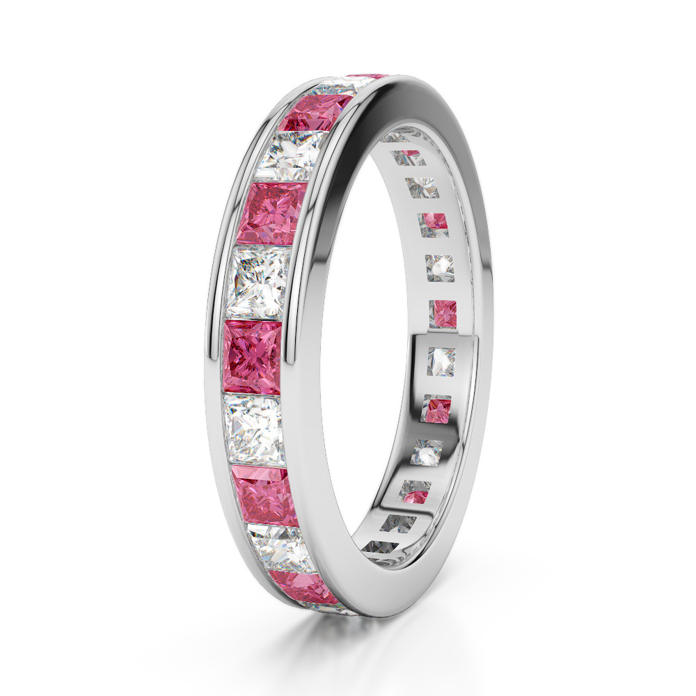 4 MM Channel Set Pink Tourmaline Full Eternity Ring With Diamond 0412