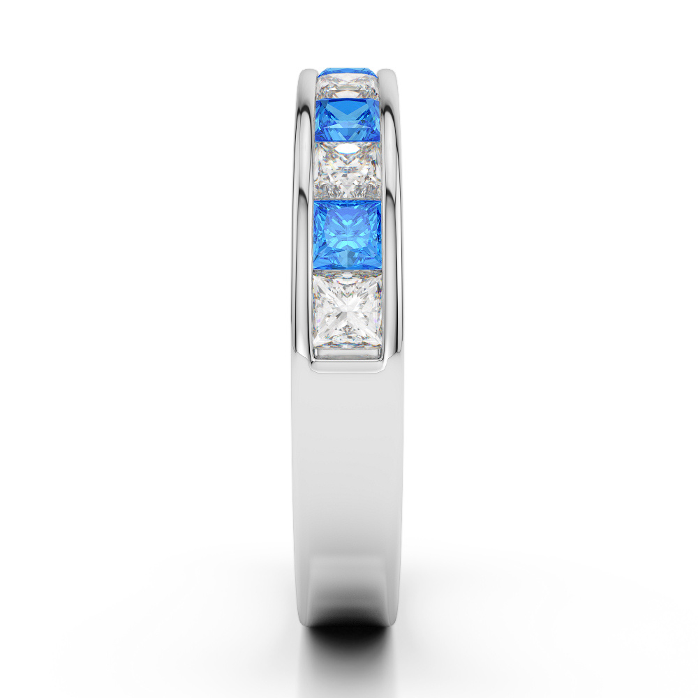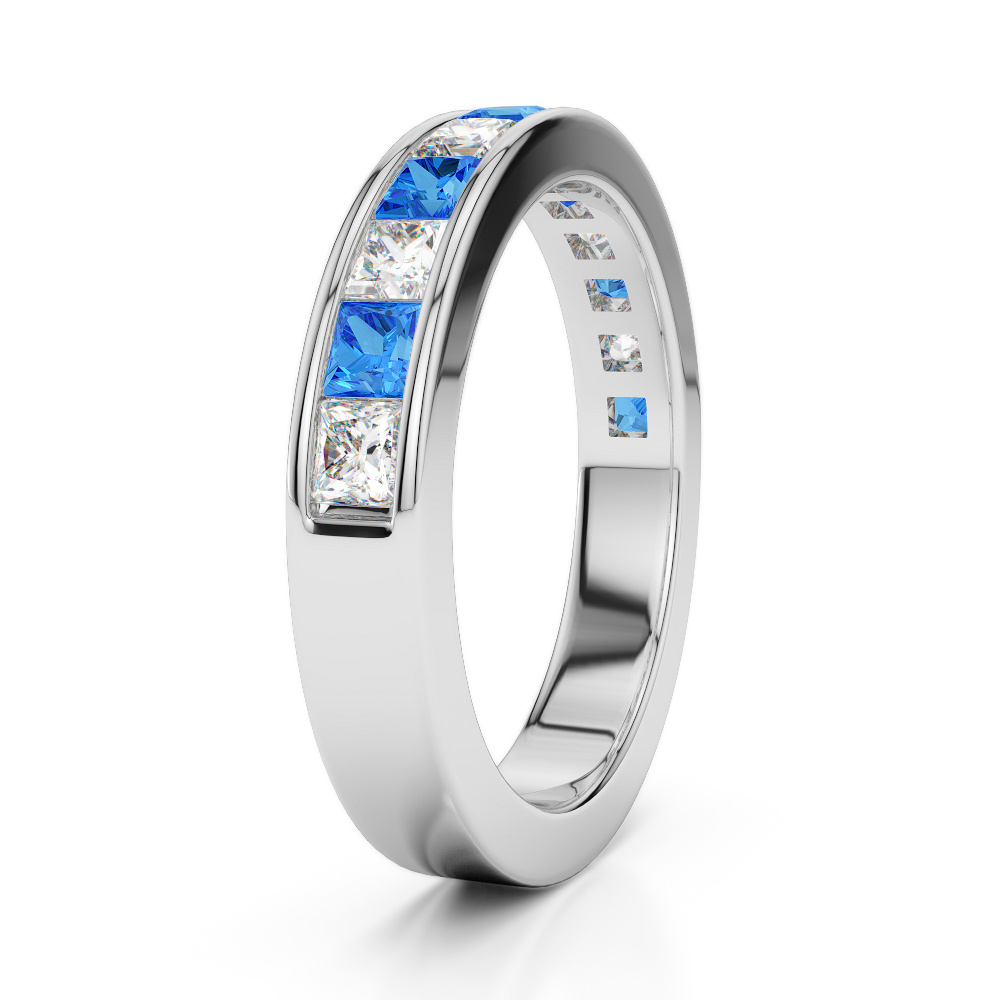4 MM Princess Cut Blue Topaz Half Eternity Ring With Diamond 0415