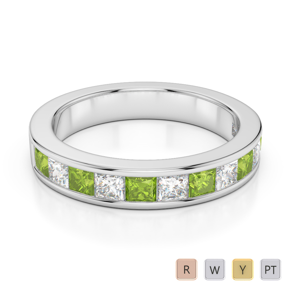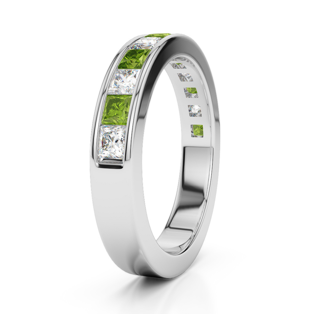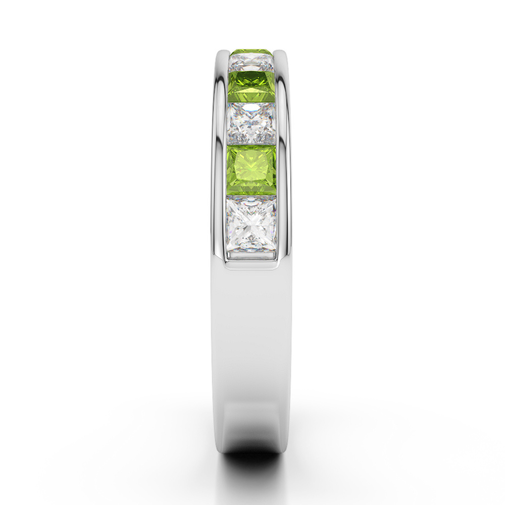4 MM Princess Cut Peridot Half Eternity Ring With Diamond 0415