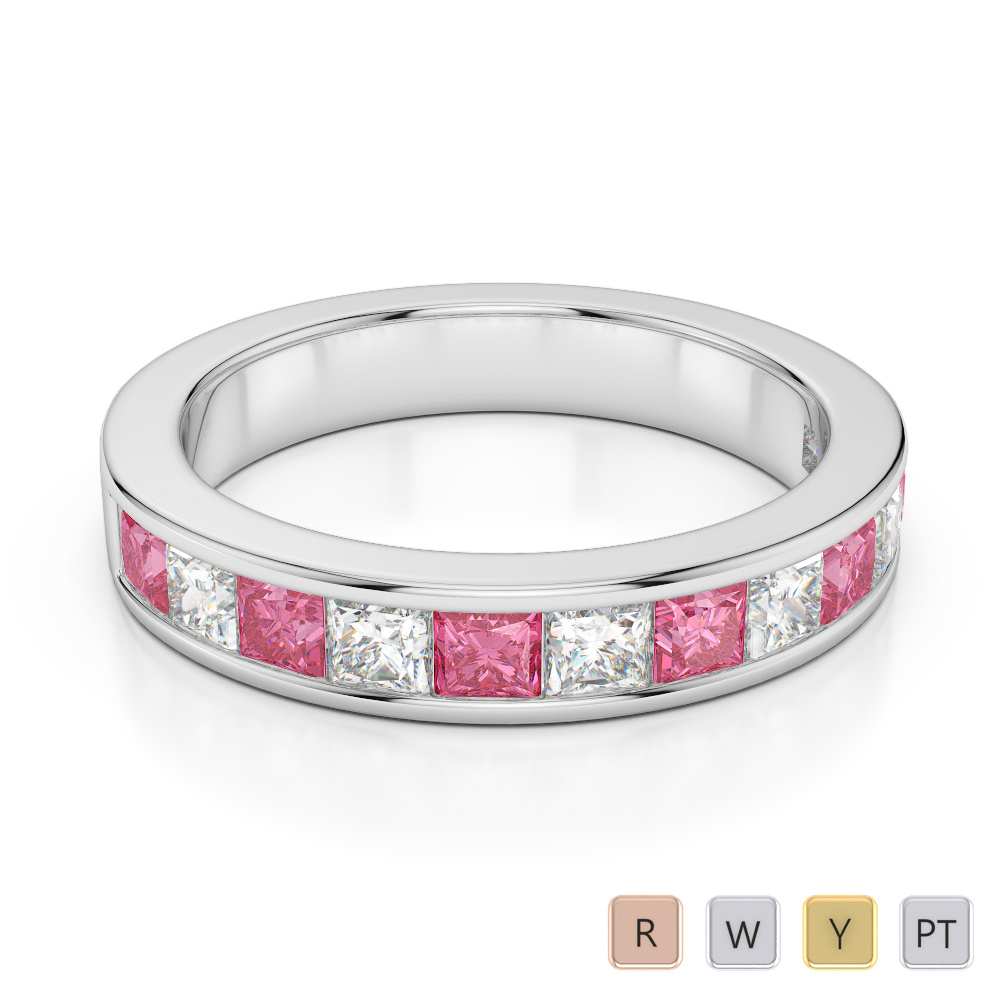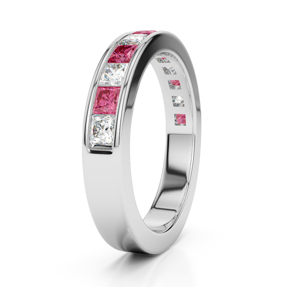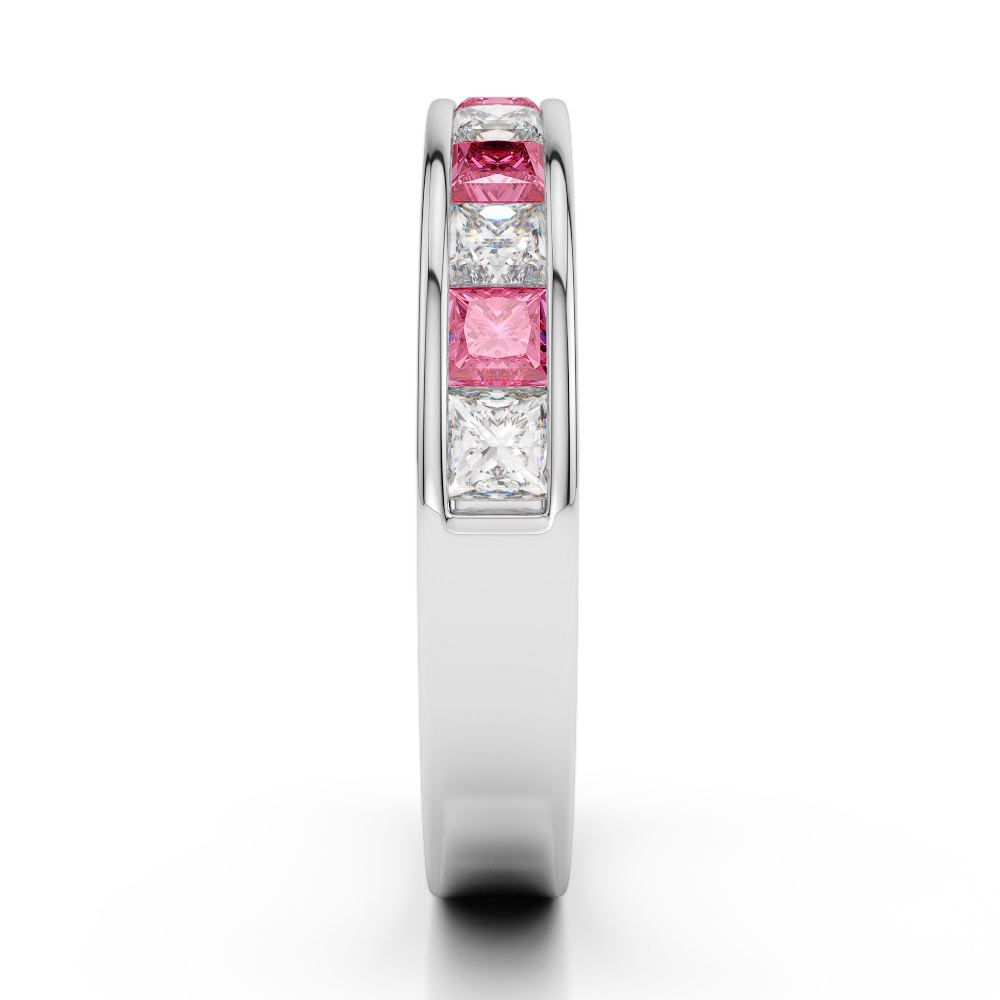 4 MM Princess Cut Pink Tourmaline Half Eternity Ring With Diamond 0415