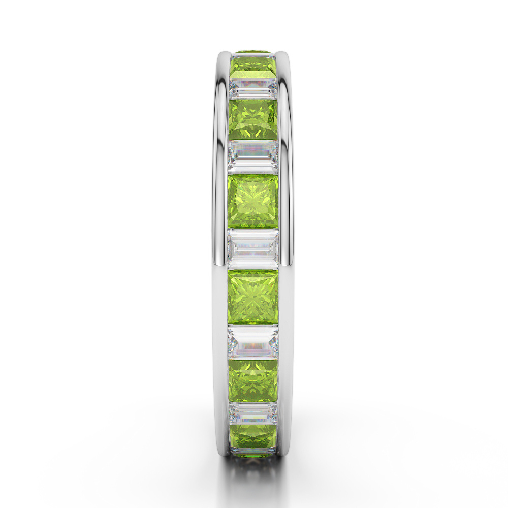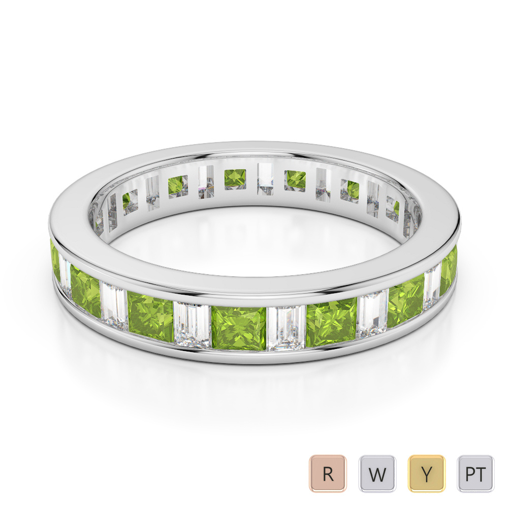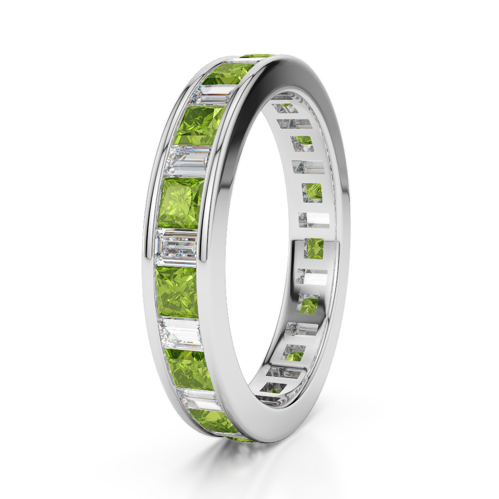 4 MM Princess Peridot & Baguette Cut Diamond Full Eternity Ring 0419