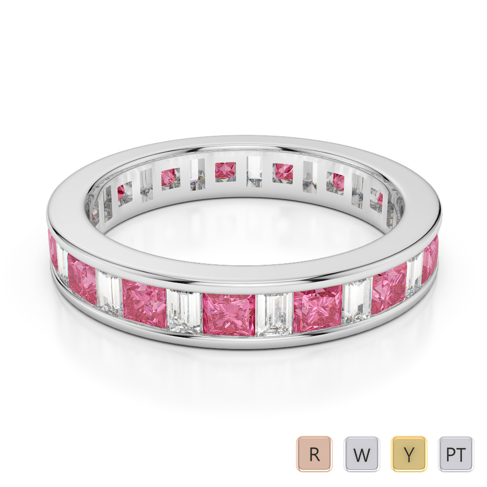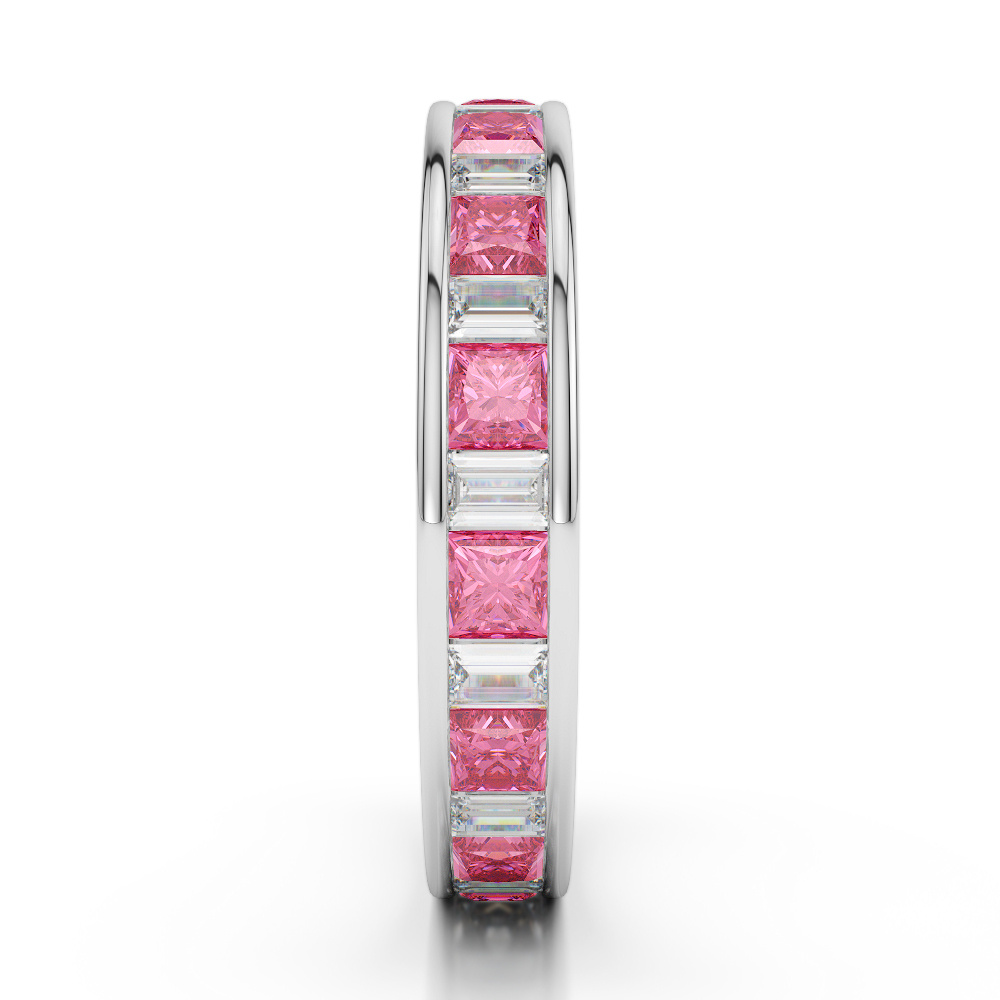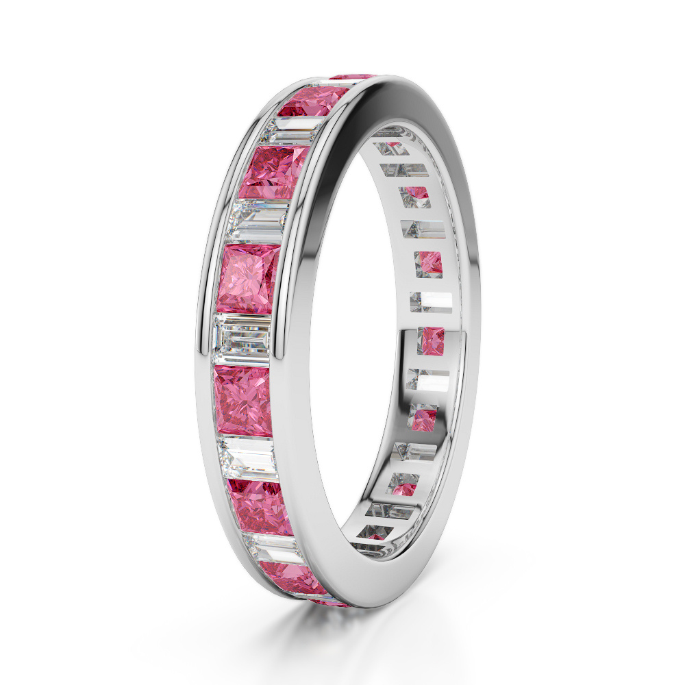 4 MM Princess Pink Tourmaline & Baguette Cut Diamond Full Eternity Ring 0419
