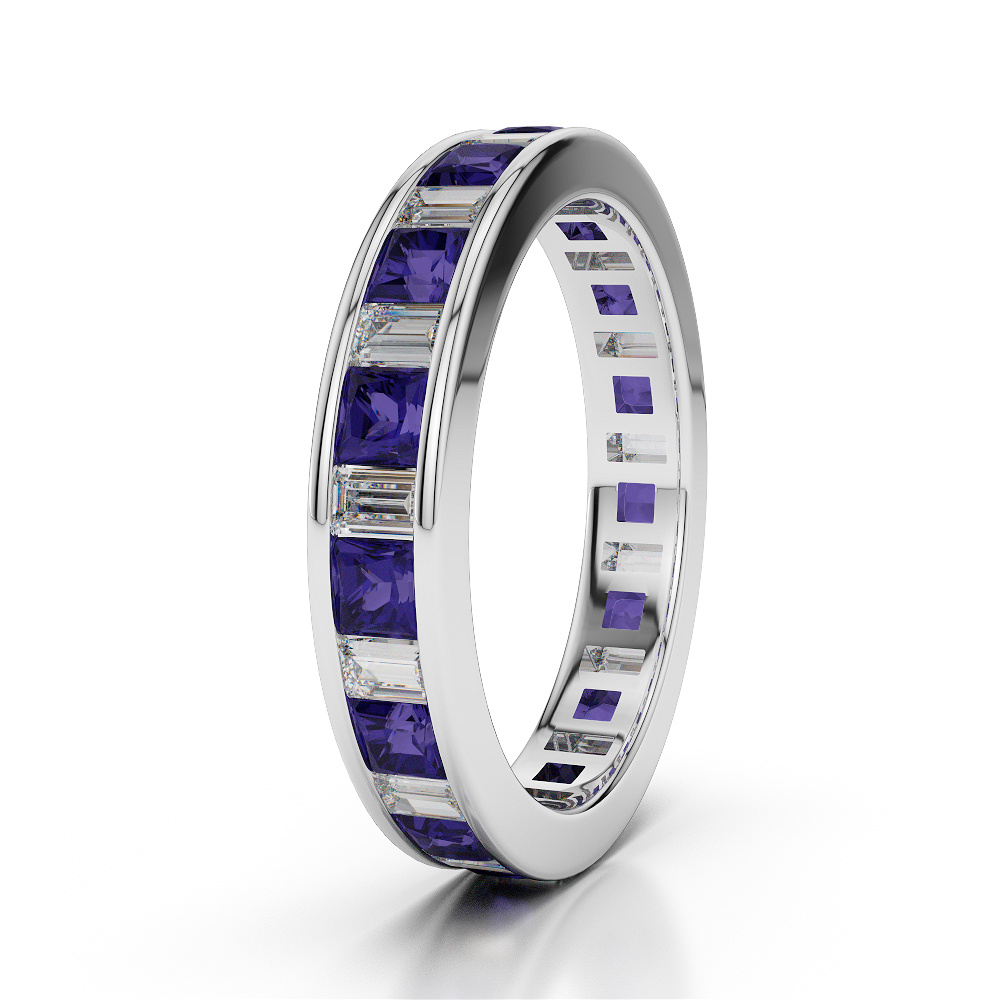 4 MM Princess Tanzanite & Baguette Cut Diamond Full Eternity Ring 0419