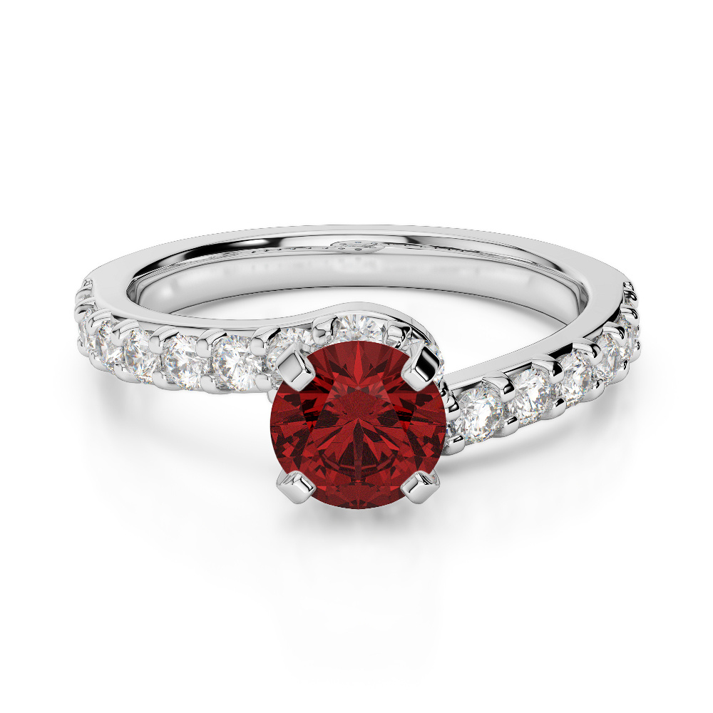 4 Prong Set Garnet Engagement Ring With Diamond 0259