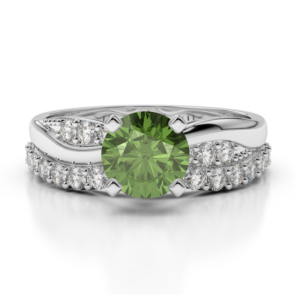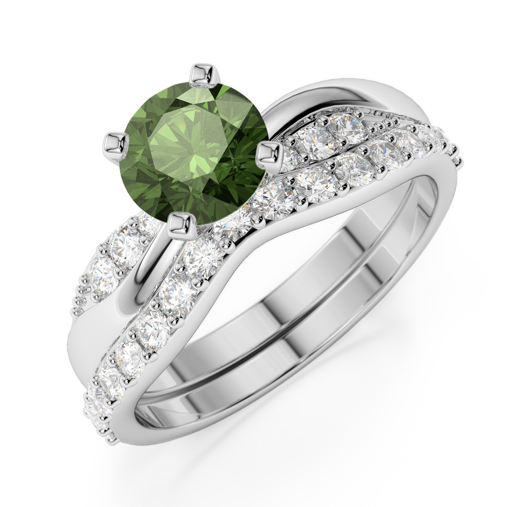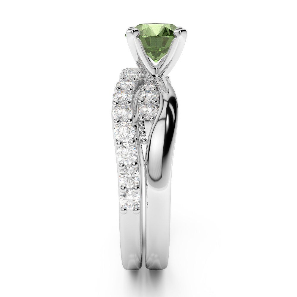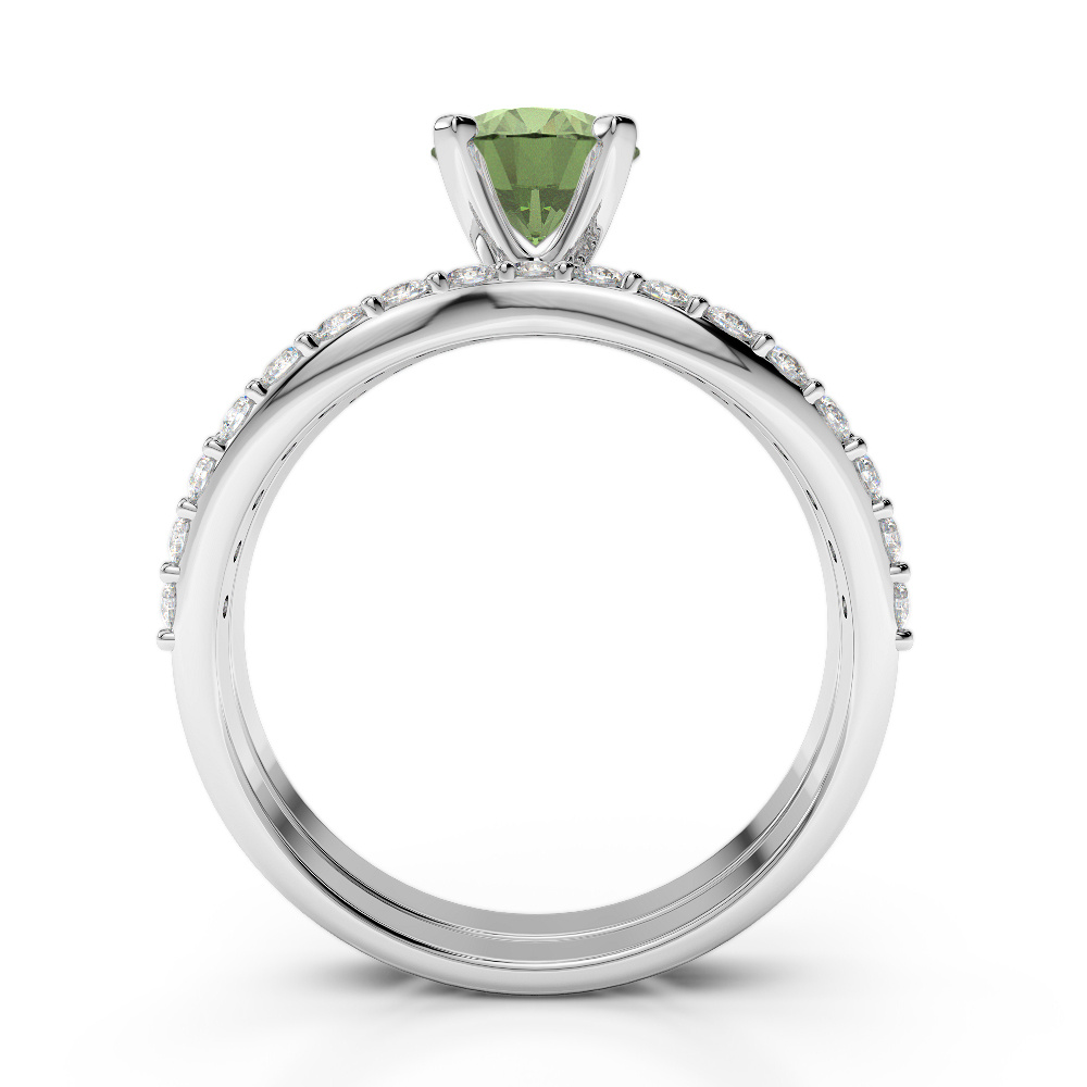 4 Prong Set Green Tourmaline & Diamond Bridal Set Ring 0335