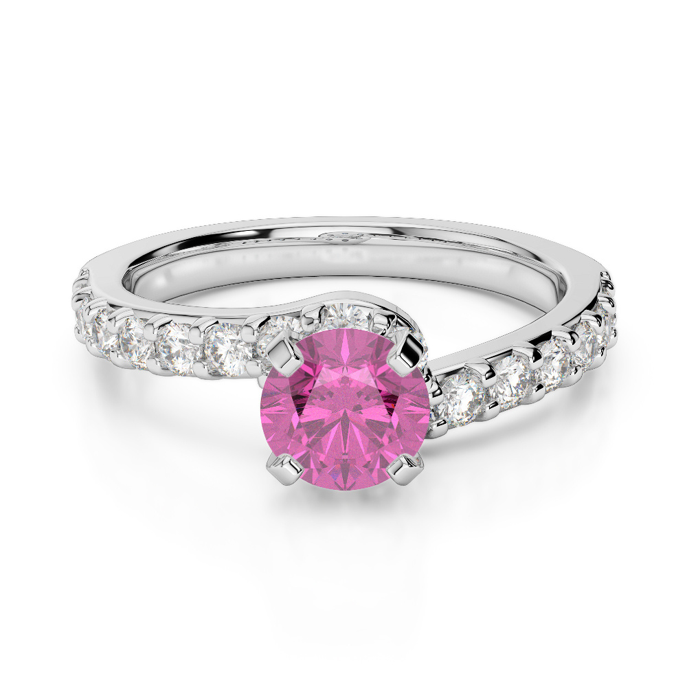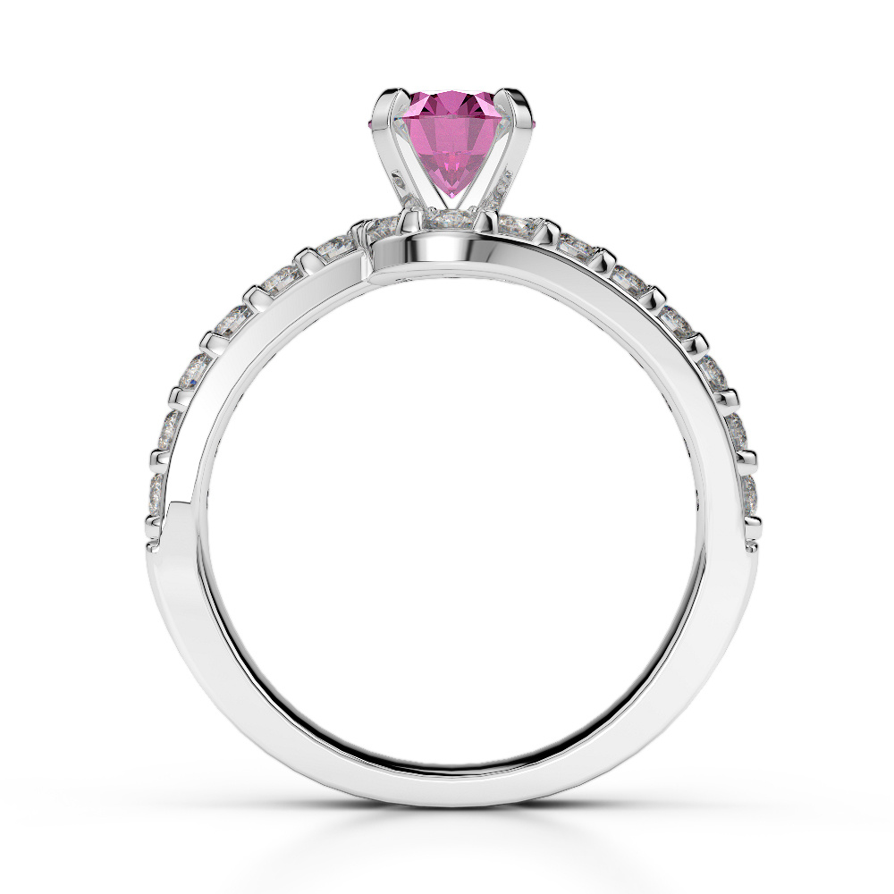 4 Prong Set Pink Sapphire Engagement Ring With Diamond 0259
