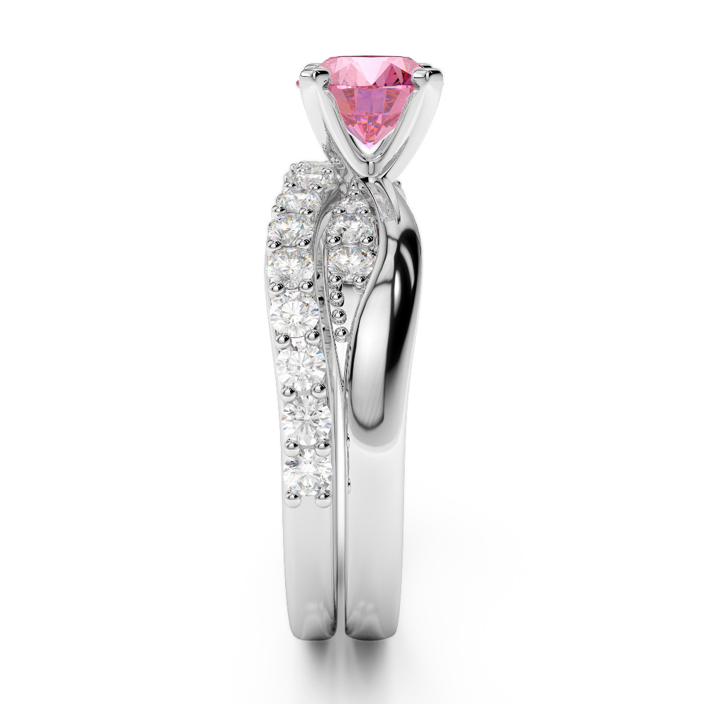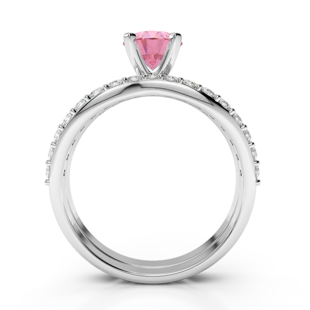 4 Prong Set Pink Tourmaline & Diamond Bridal Set Ring 0335