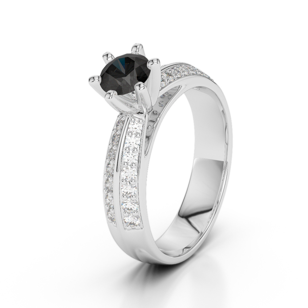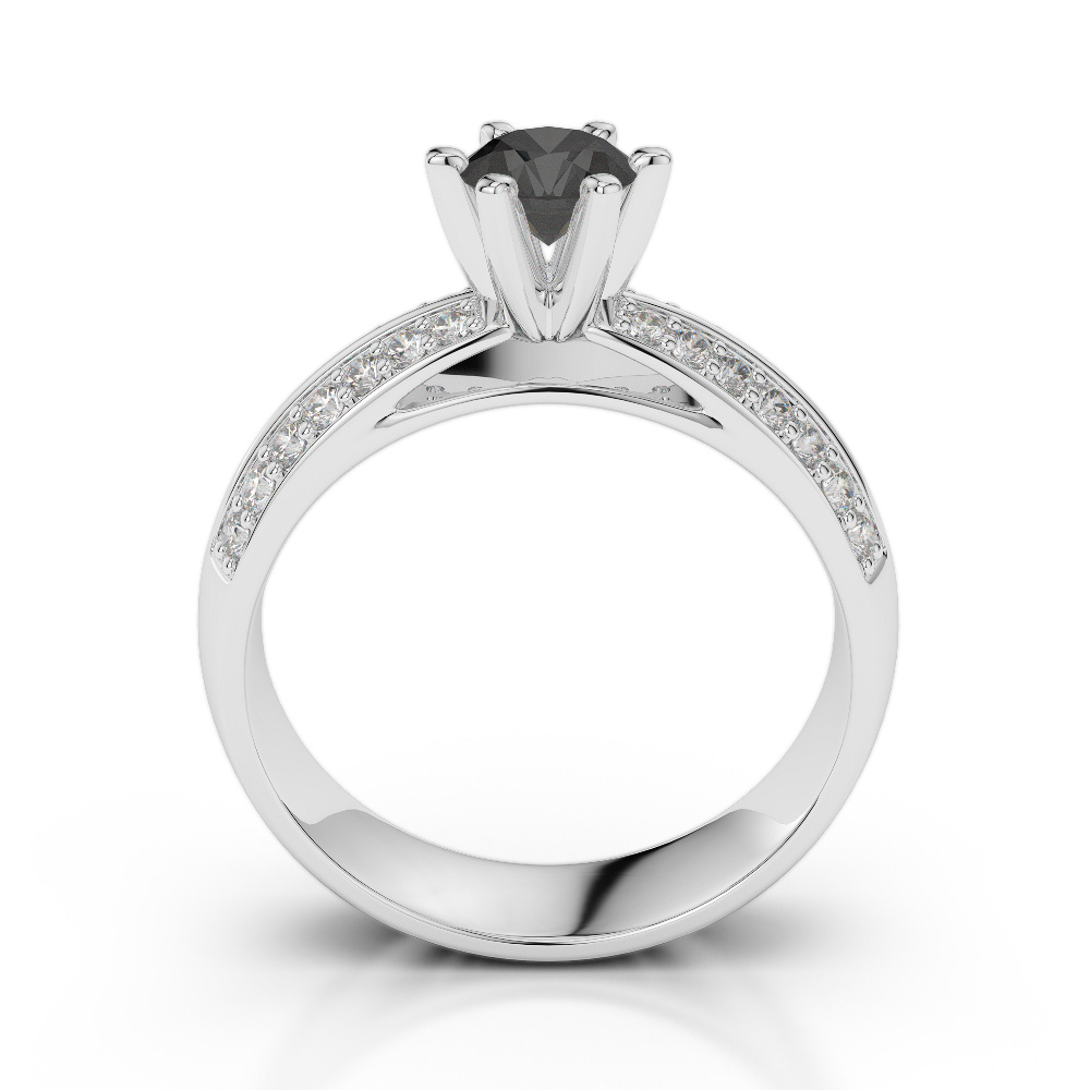 Celebrate your love story with this exquisite Black Diamond And Diamond Engagement Ring, a true symbol of commitment and elegance. At its heart lies a stunning diamond center stone, expertly cut to maximize brilliance and sparkle, capturing the light with every movement. The center diamond is gracefully secured in a classic prong setting, which not only elevates the stone for maximum light exposure but also adds a refined touch to the design. Flanking the center are delicate side stones, also held in prong settings, that add a touch of sophistication and enhance the overall allure of the ring.