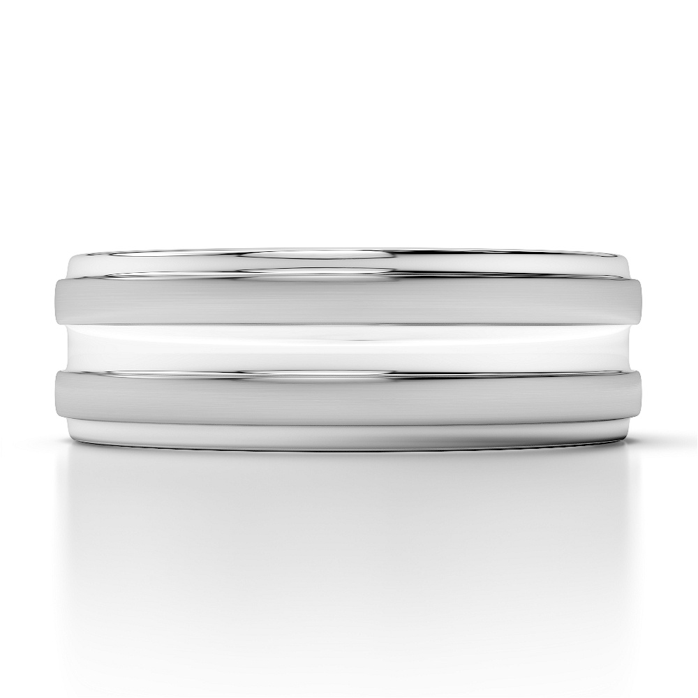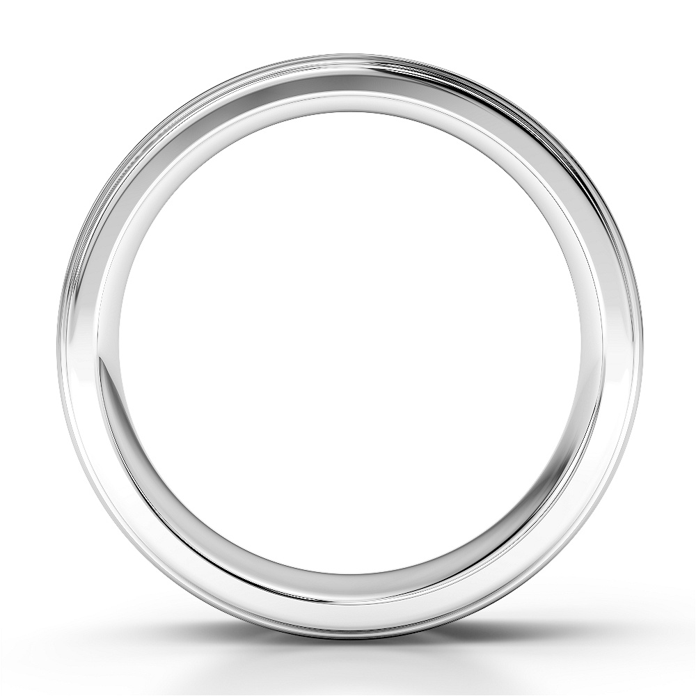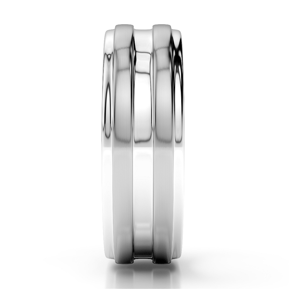 This bold gold/platinum band features a smooth domed surface with industrial-inspired screw motifs spaced evenly around the band. Its polished finish adds sophistication while offering a contemporary edge. Ideal as a modern wedding ring or statement piece.