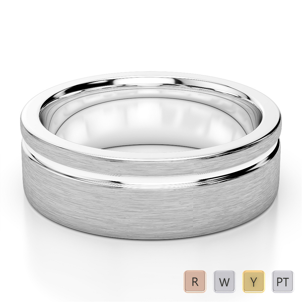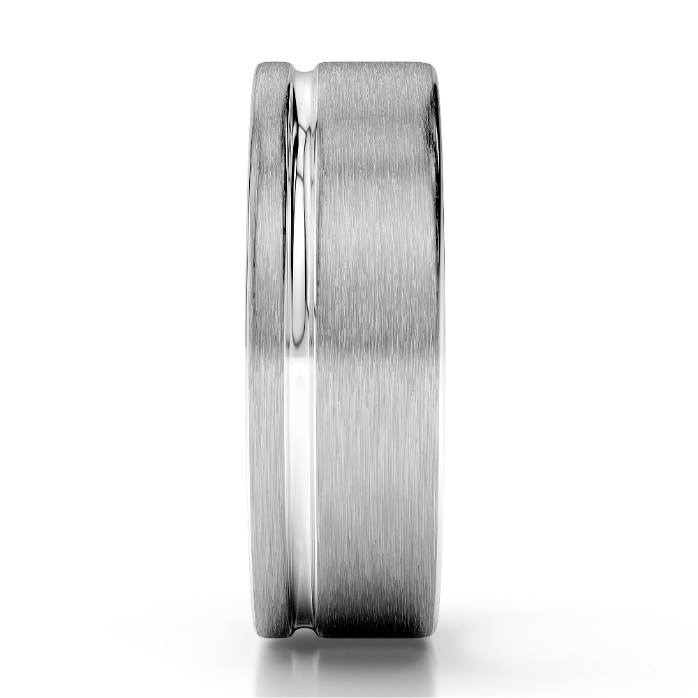 This refined gold/platinum band showcases a flat brushed centre bordered by sleek, high-polish edges. Its timeless design strikes a perfect balance between classic elegance and modern style, ideal for everyday sophistication or as a meaningful wedding ring.