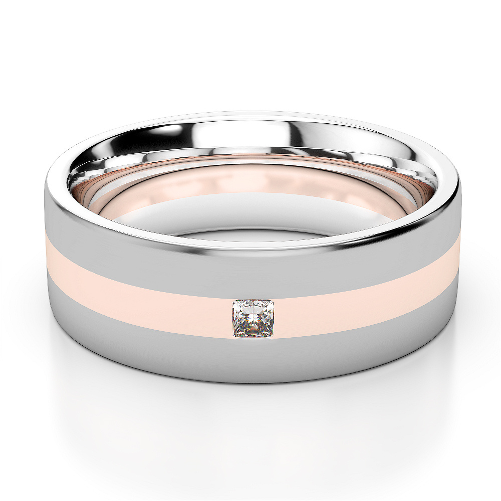 7 MM Flush Set Princess Cut Diamond Mens Band in White and Rose Gold 0116