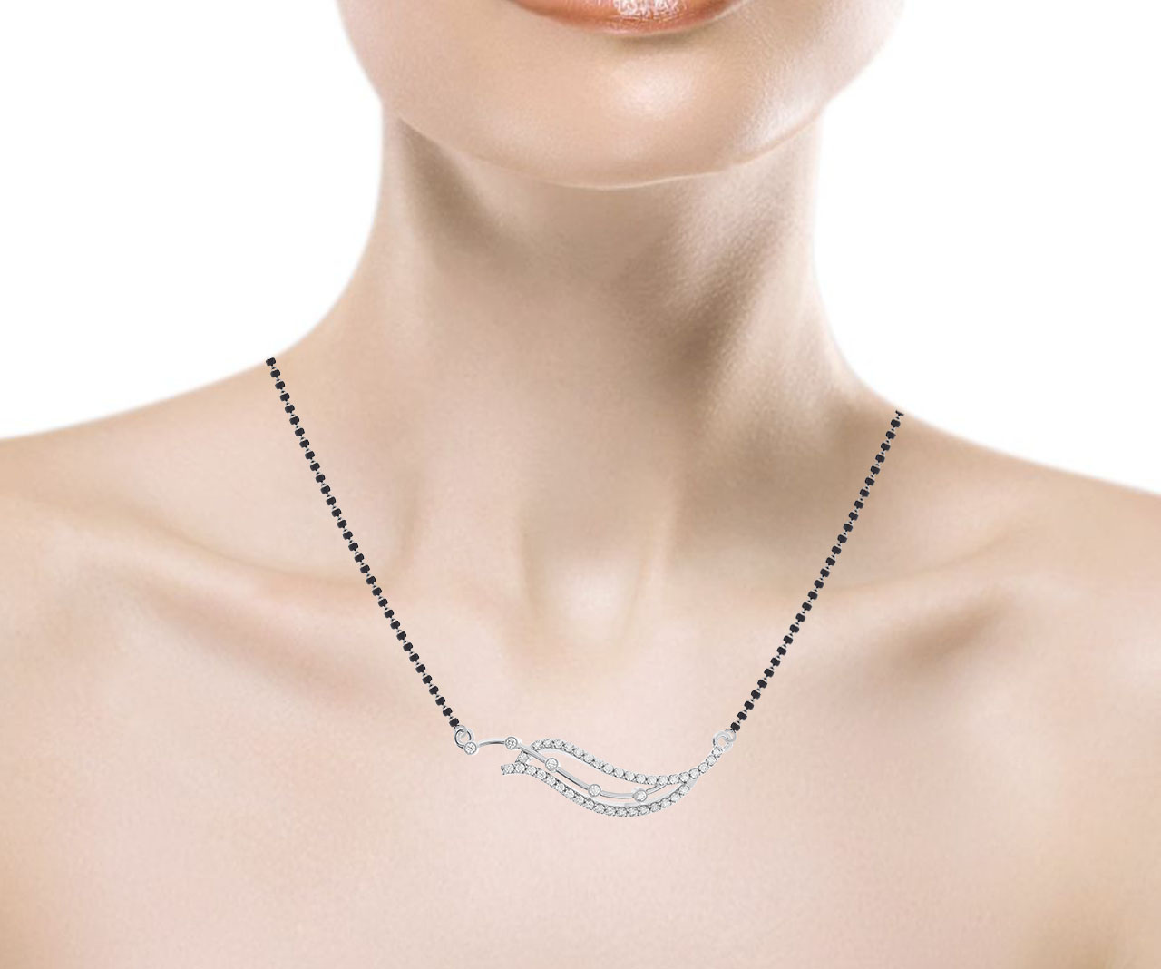 The Diamond Mangalsutra Necklace, embellished with dazzling diamonds, stands as a sophisticated symbol of grace and love. Its secure installation and enhanced brilliance are assured by the prong adjustments. Whether offered with heartfelt sincerity or reserved for significant occasions, its timeless allure renders it perfect and destined for lifelong admiration.