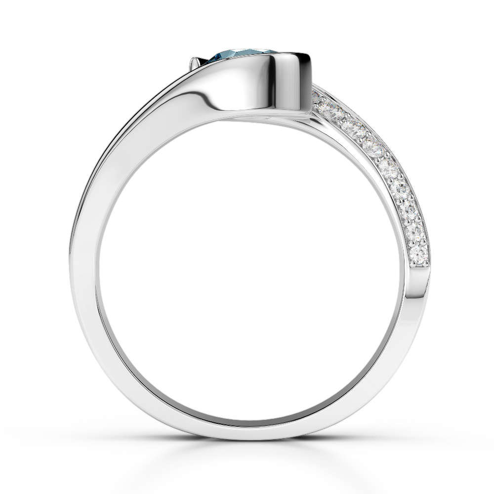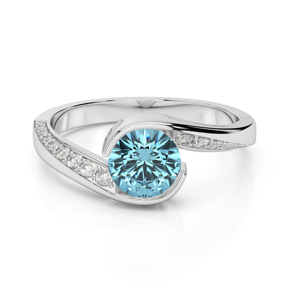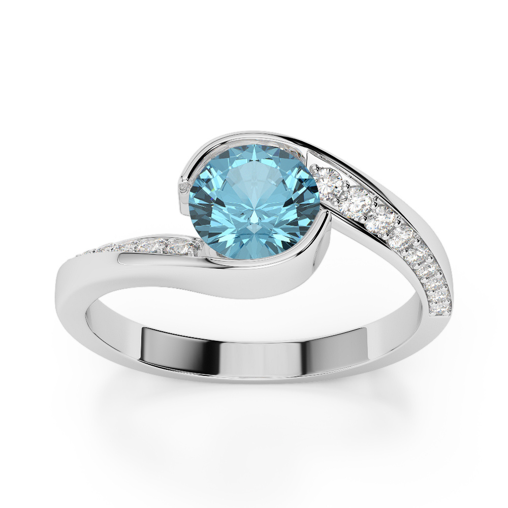 This exquisite Aquamarine And Diamond Engagement Ring features a stunning diamond center that captures the light with every movement, creating a dazzling display of brilliance. The elegant design highlights the diamond’s clarity and sparkle, with the center stone securely held in a classic prong setting to maximize light exposure. Complementing the centerpiece, select accent stones are enclosed in sleek bezel settings, adding a modern touch while offering additional protection and a smooth finish. The band is crafted for a comfortable fit, enhancing the overall beauty and sophistication of this timeless symbol of love and commitment.