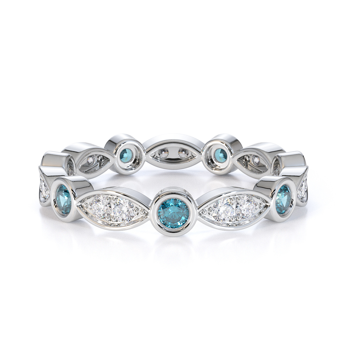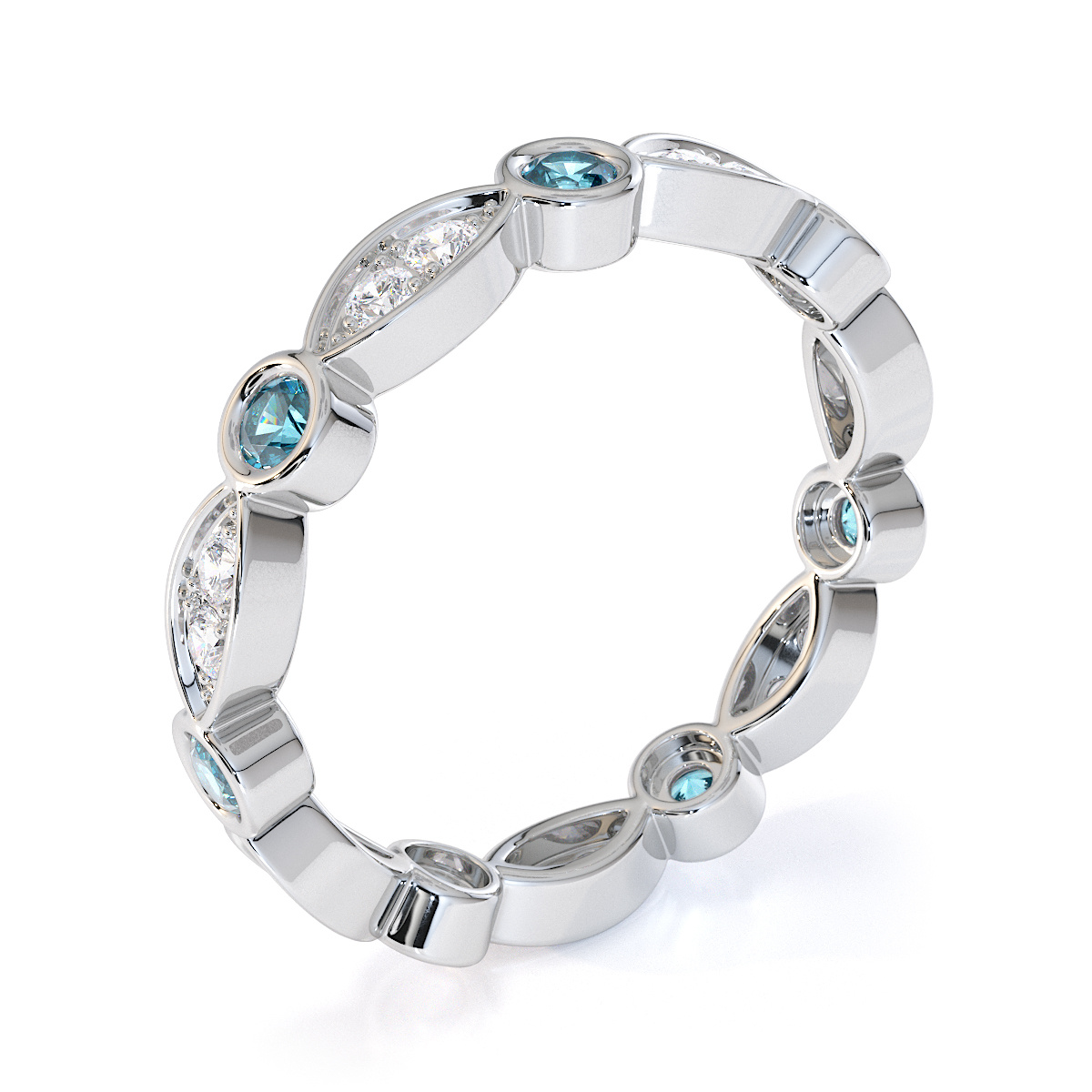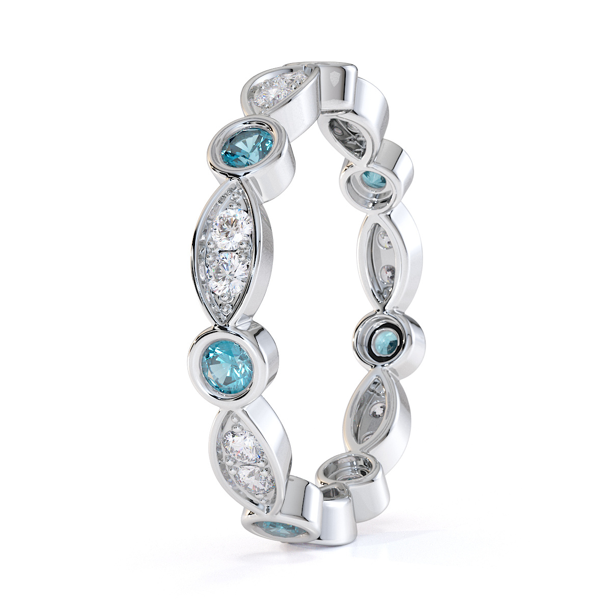 Bezel Set Aquamarine & Prong Set Diamond Full Eternity Ring 0434