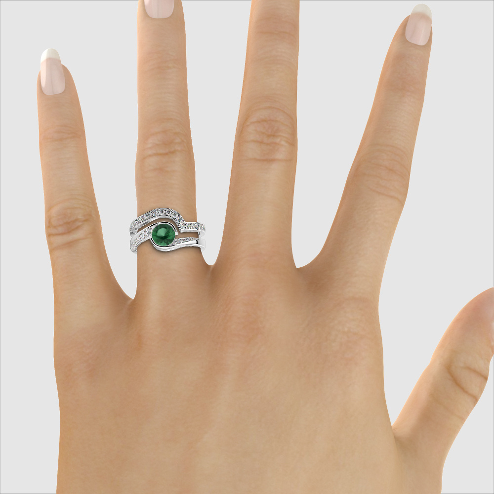 Bezel Set Emerald and Prong Set Diamond Bridal Set Ring 0333