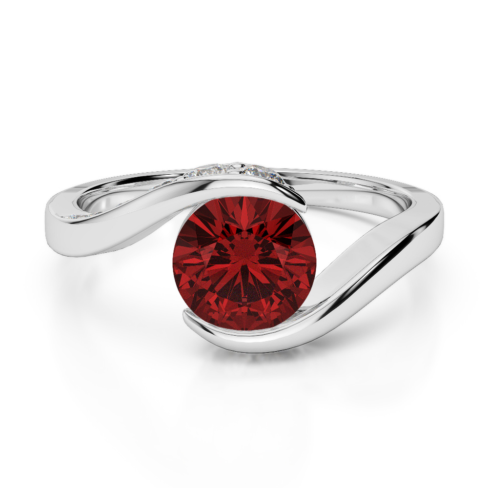 Indulge in elegance with our Round Cut Garnet And Diamond Engagement Ring, featuring a regal Garnet secured in a classic prong setting with a half bezel accent—offering both brilliance and added protection. Framed by sparkling diamonds, it creates a striking contrast and timeless brilliance.