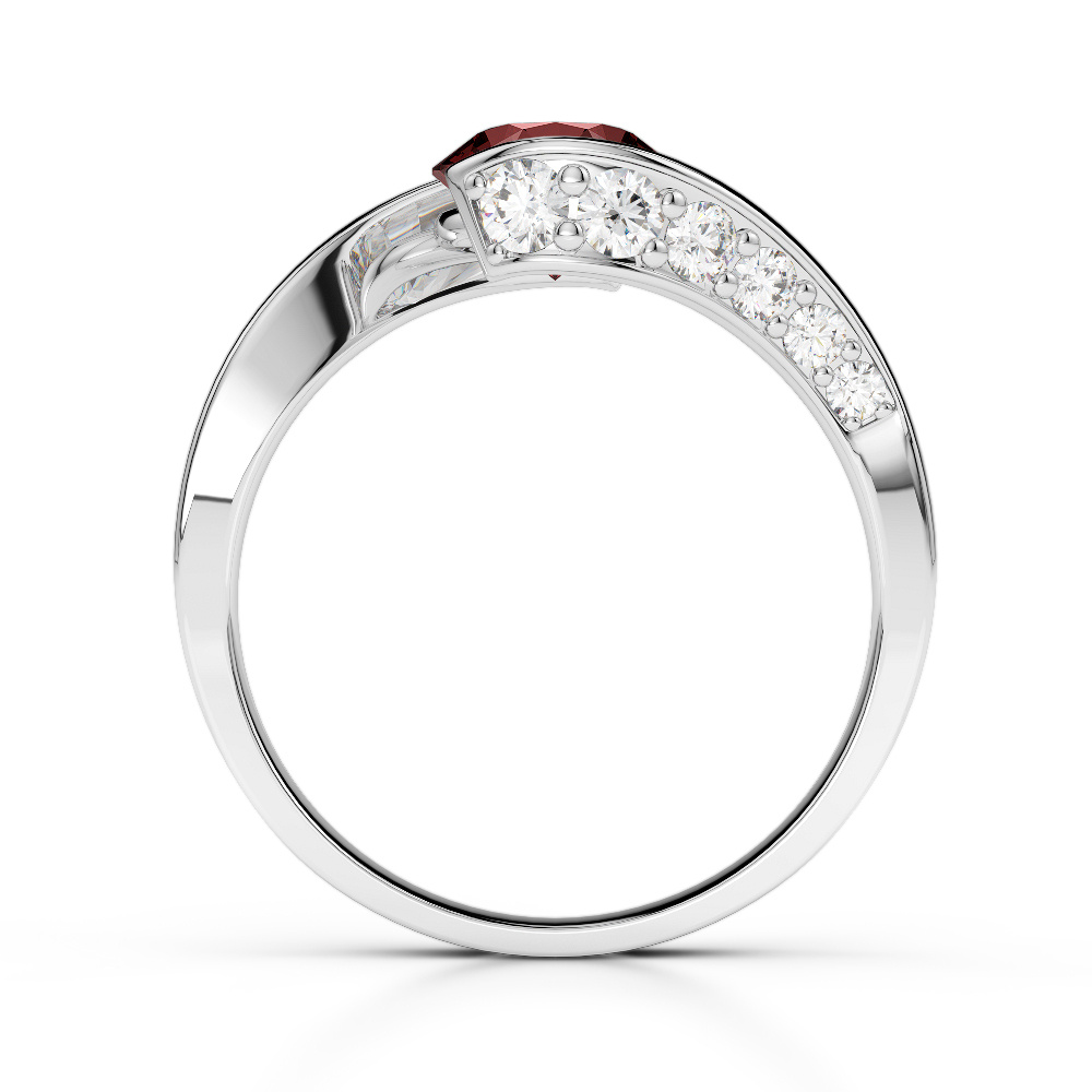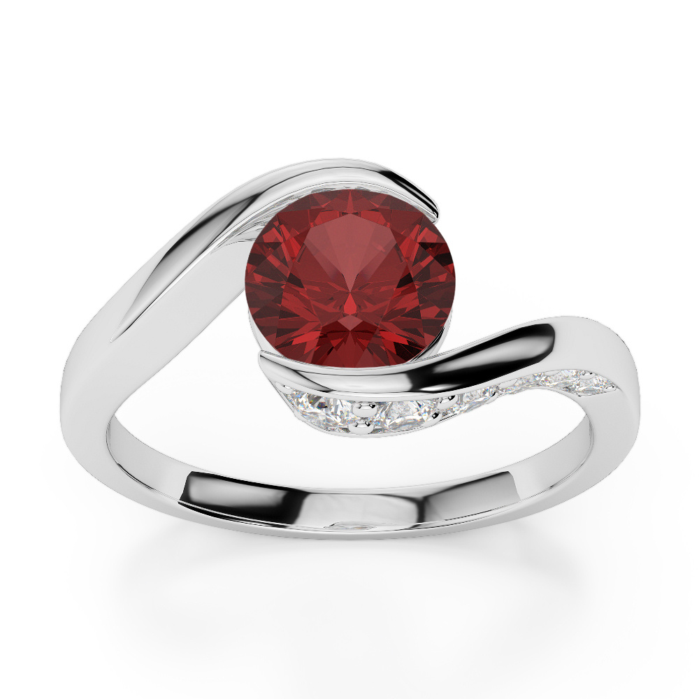 Bezel Set Garnet Engagement Ring With Diamond 0207